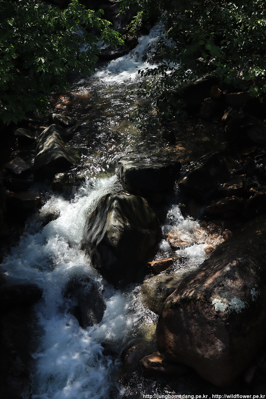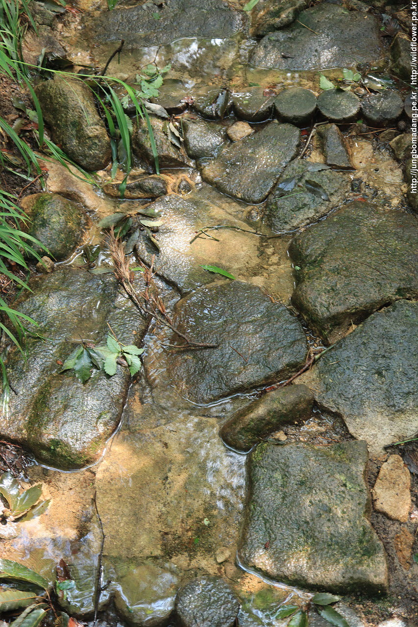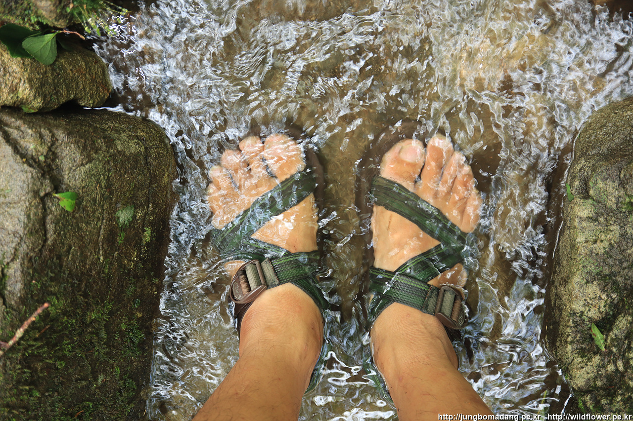 등로 중간 중간 배수로를 만들어 두어 물이 흐르는 곳은 이렇게 잠시 발에게 휴식을 줄 수 있습니다.