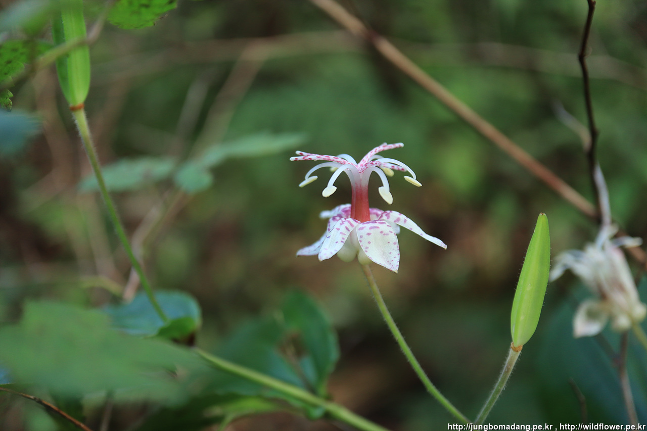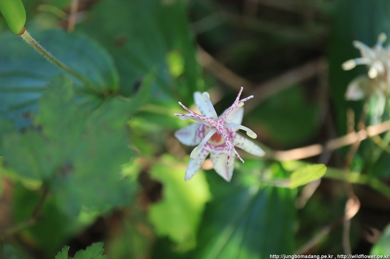 뻐꾹나리 - 이름의 유래는 꽃잎의 자주빛이 뻐꾸기의 앞가슴과 비슷한 색이라는 설과 뻐꾸기가 우는 여름에 피는 나리꽃이라는 설이 있습니다, 꽃 모양이 독특하지 않습니까?