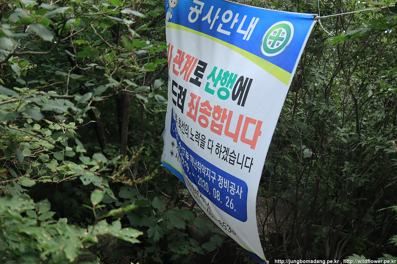 전날 비가 왔는 지 등산로 일부에 물이 흐릅니다.