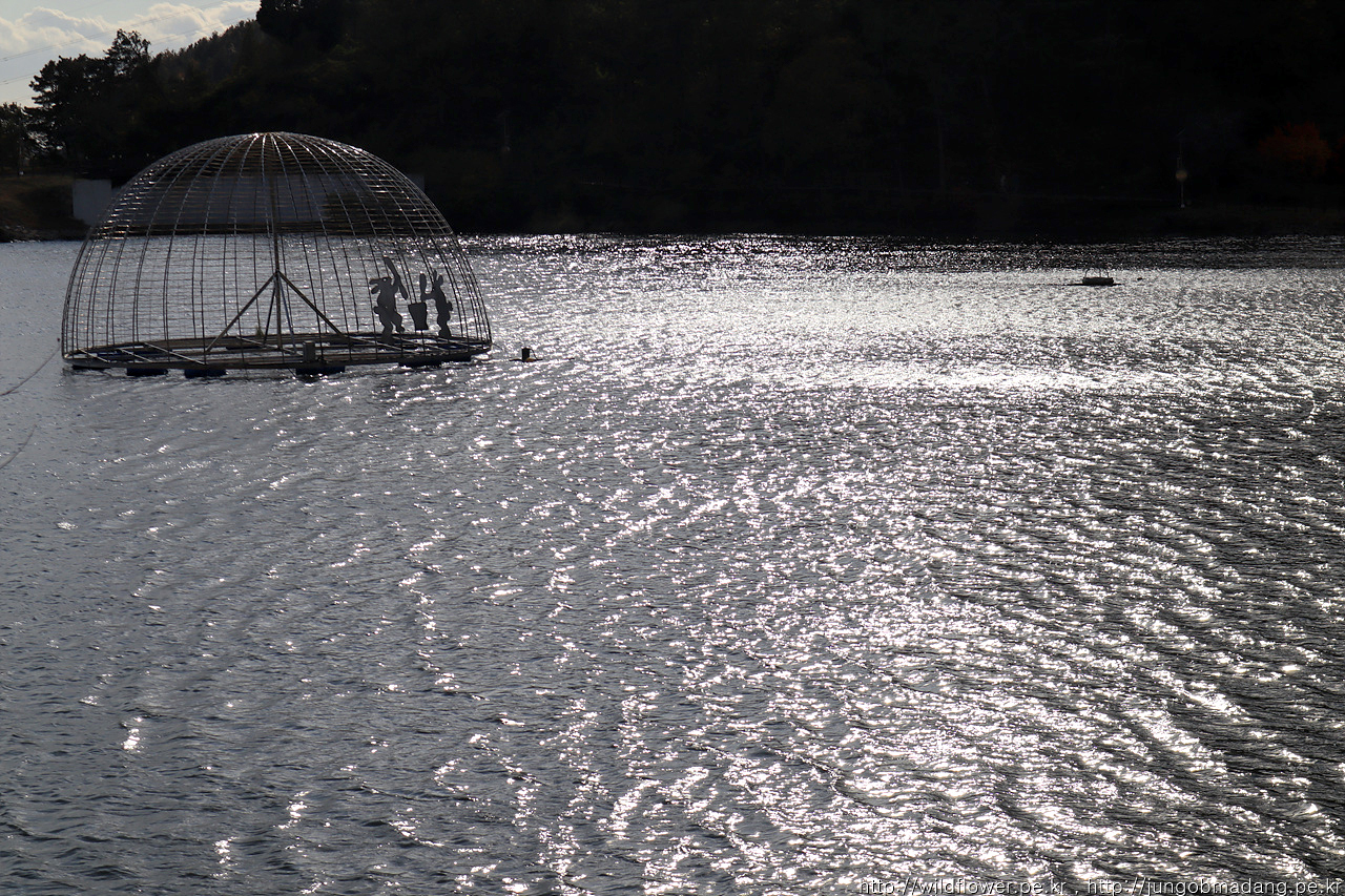 호수 중앙에 웬 새장이?