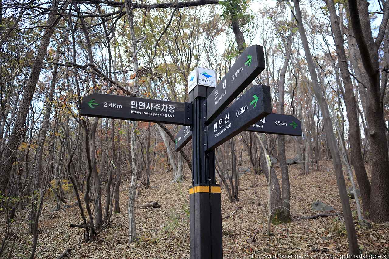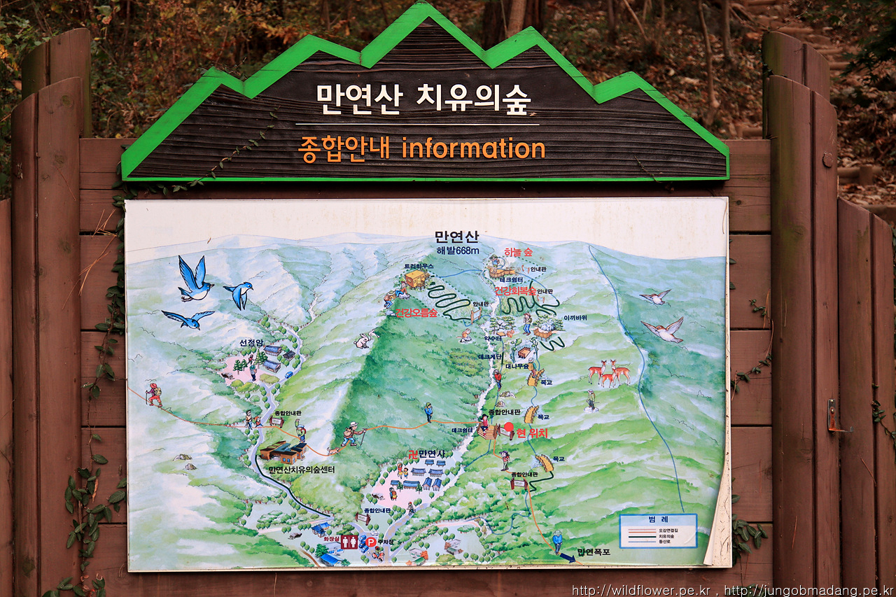 분명 이전 이정표에 만연사 표시를 보고 왔는 데 사라 졌습니다. ㅠ 치유의 숲 센터로 가면서 지나가는 분에게 물으니 치유의 숲 센터 쪽 방향이 맞는 거 같네요.
