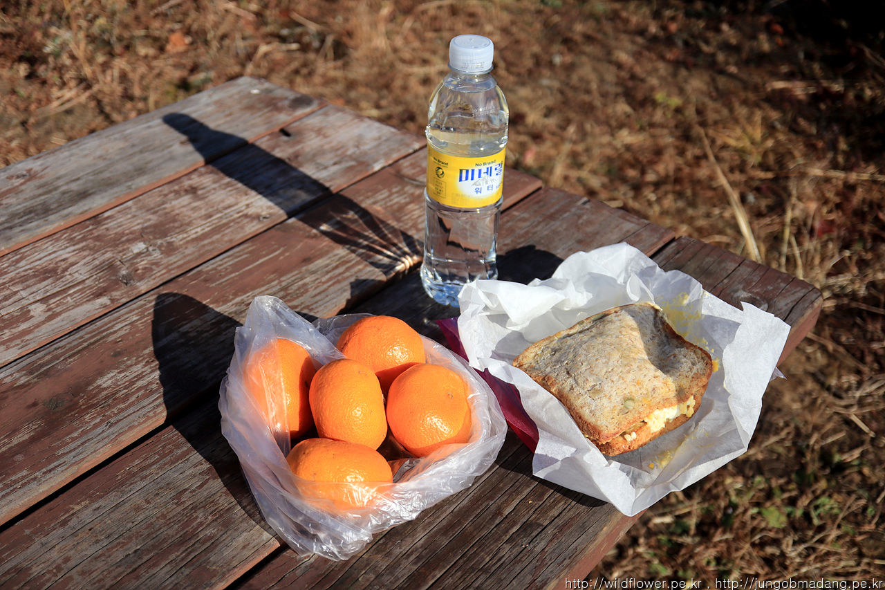새벽부터 산행하다 보니 허기가 져서 집에서 싸온 도시락을 꺼내 봅니다. 햇볕 때문에 따실 줄 알았는 데, 아직 바람은 상당히 차네요. 옷을 최대한 껴입고 섭취..