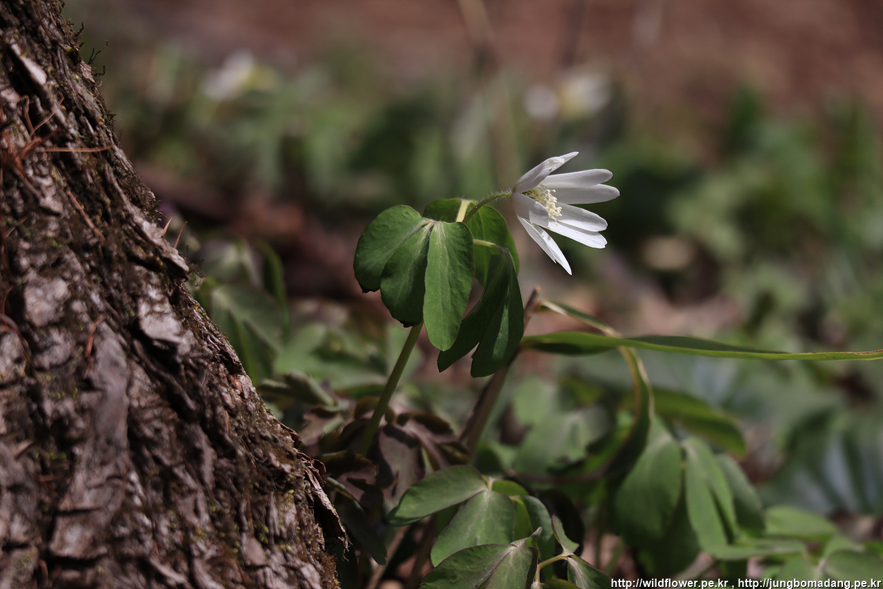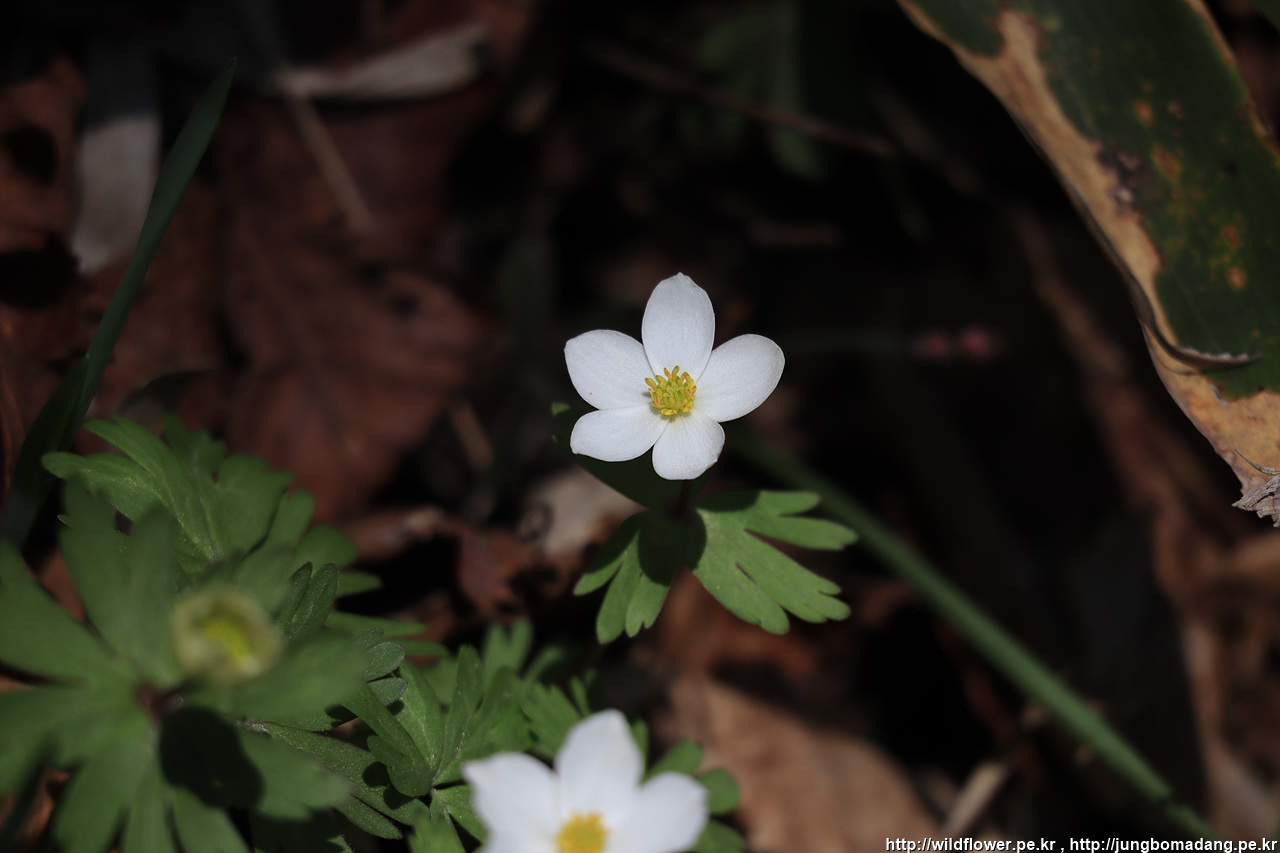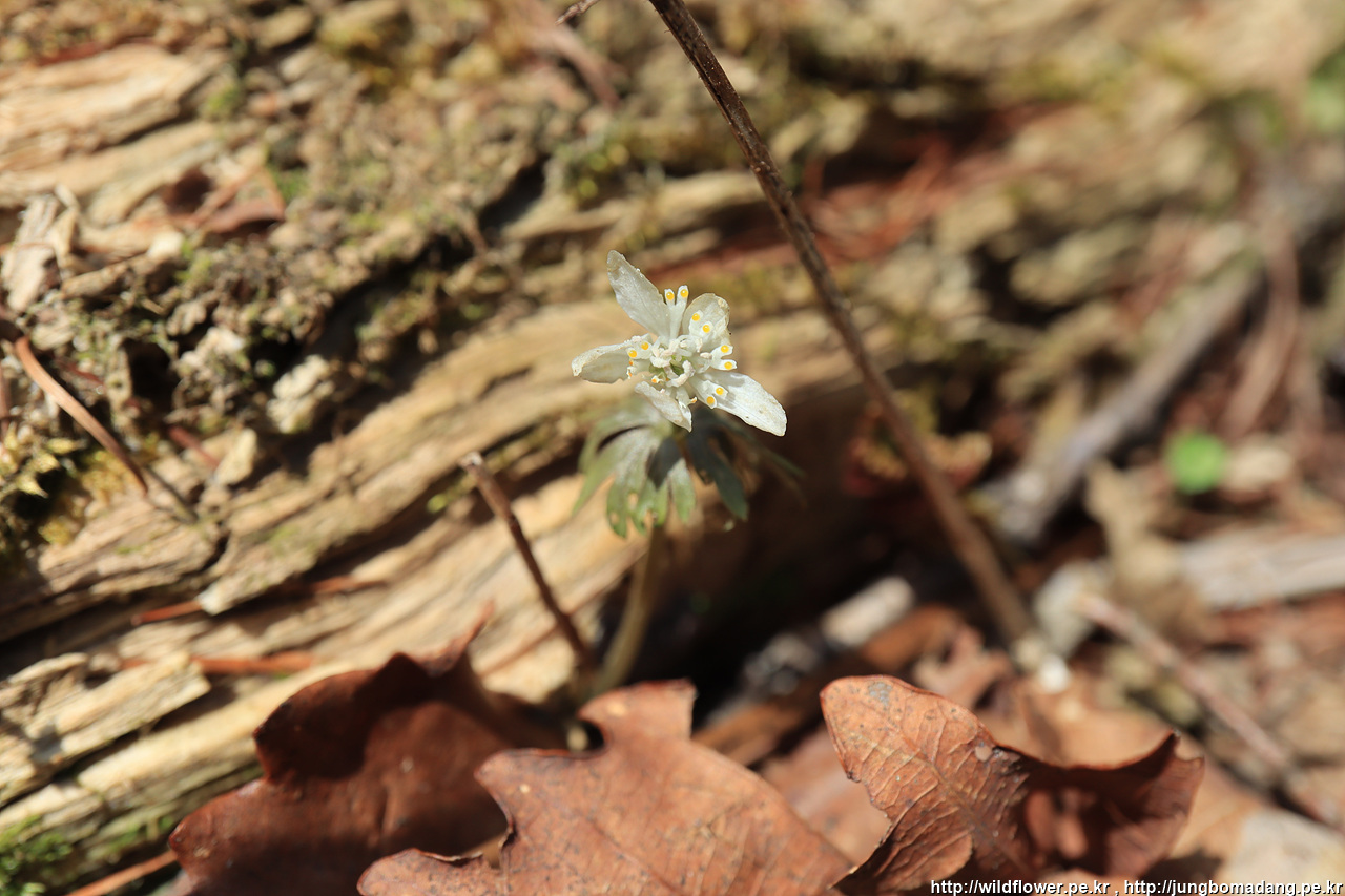 너도바람꽃 한 개체가 힘겹게 피어 있습니다.