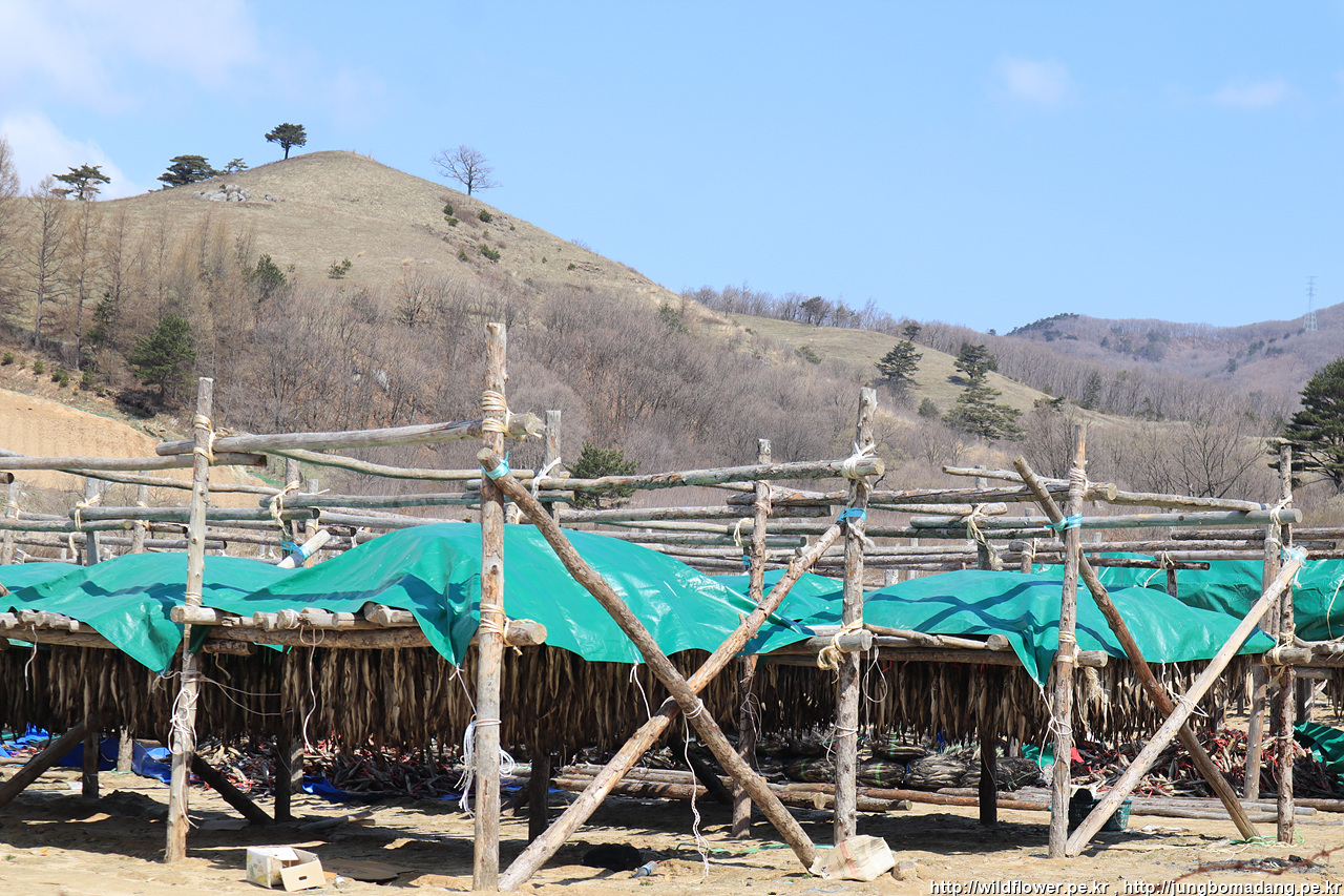 그렇게 열심히 꽃 찾아서 걸어 가는 데, 황태덕장에서 겨우내 정성스레 말린 황태들을 수확하는 작업에 한창이네요. 그 특유의 비릿한 향이 좋습니다.