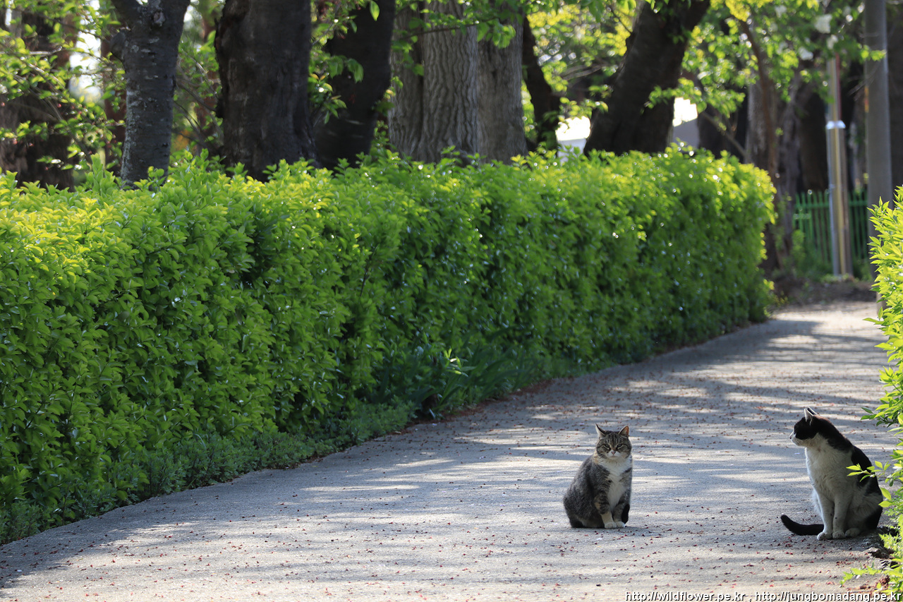 동네 고녜이 두마리가 보입니다. - 고녜이는 고양이를 강릉 사투리로 일컫는 말