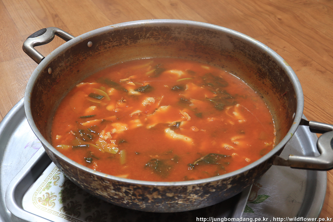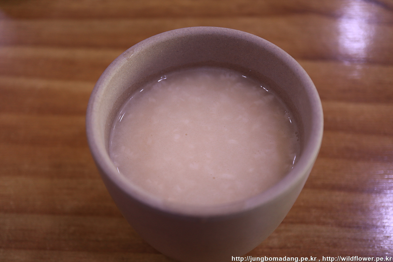 음식을 주문하고, 주인에게 양해를 구하고 양조장에서 샘플로 먹고 남은 동동주 한병을 나눠 마십니다.