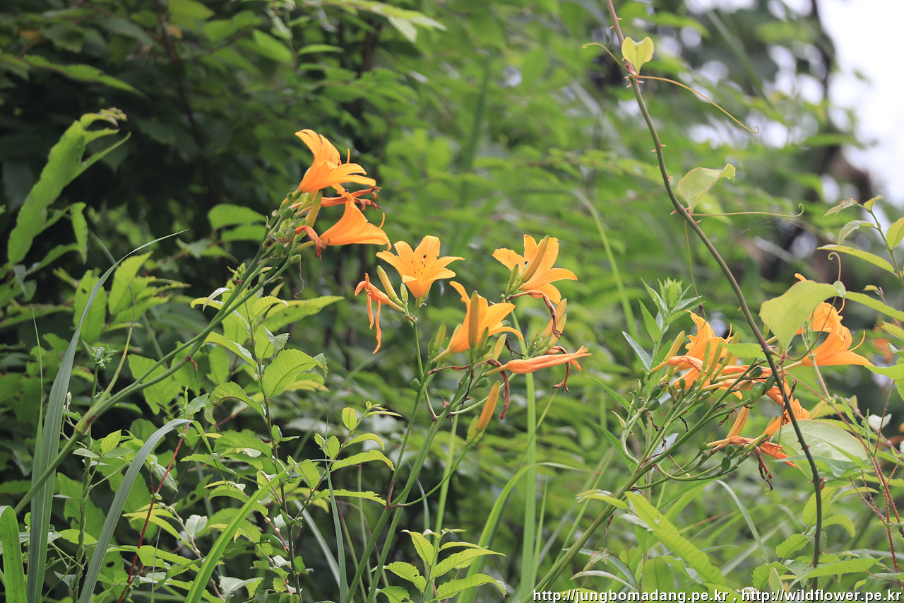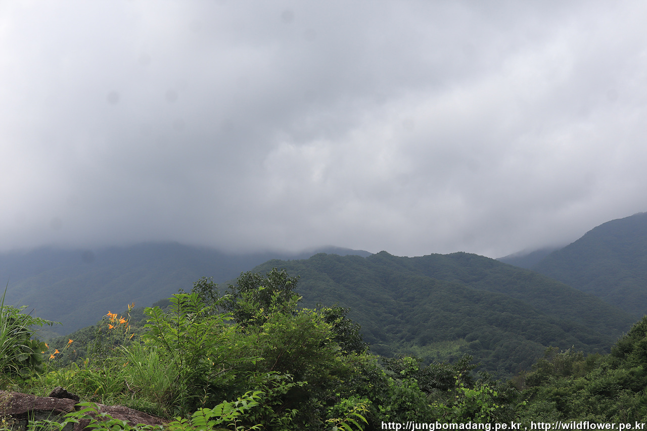 원추리 뒤로 지리산이 터 잡고 있고, 오늘 날씨도 흐리네요. 금방이라도 비가 올 듯 합니다.