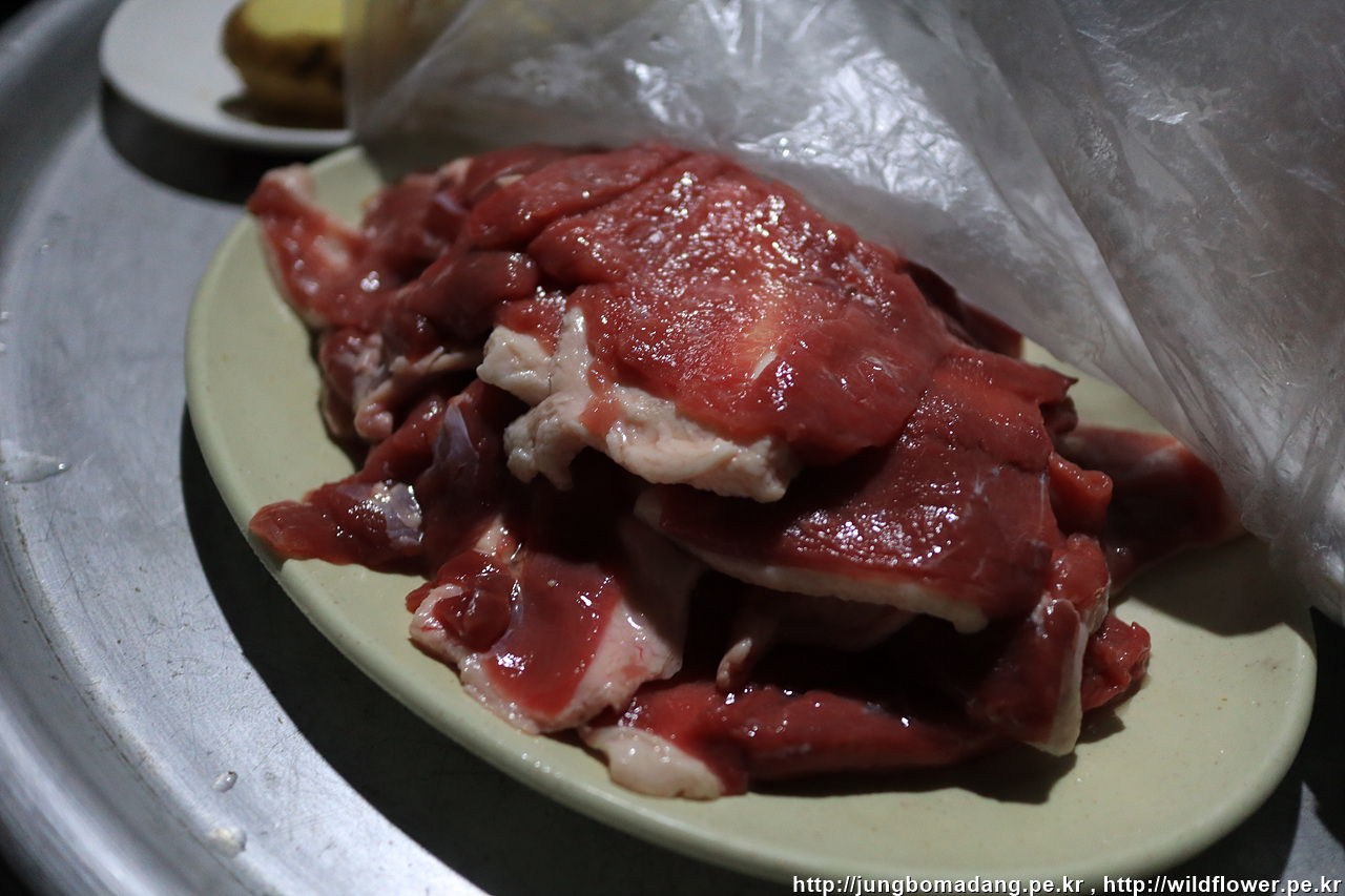 민박집에 도착하여 사장님이 준비해주신 직접 잡은 오리와 닭 구이를 준비합니다.