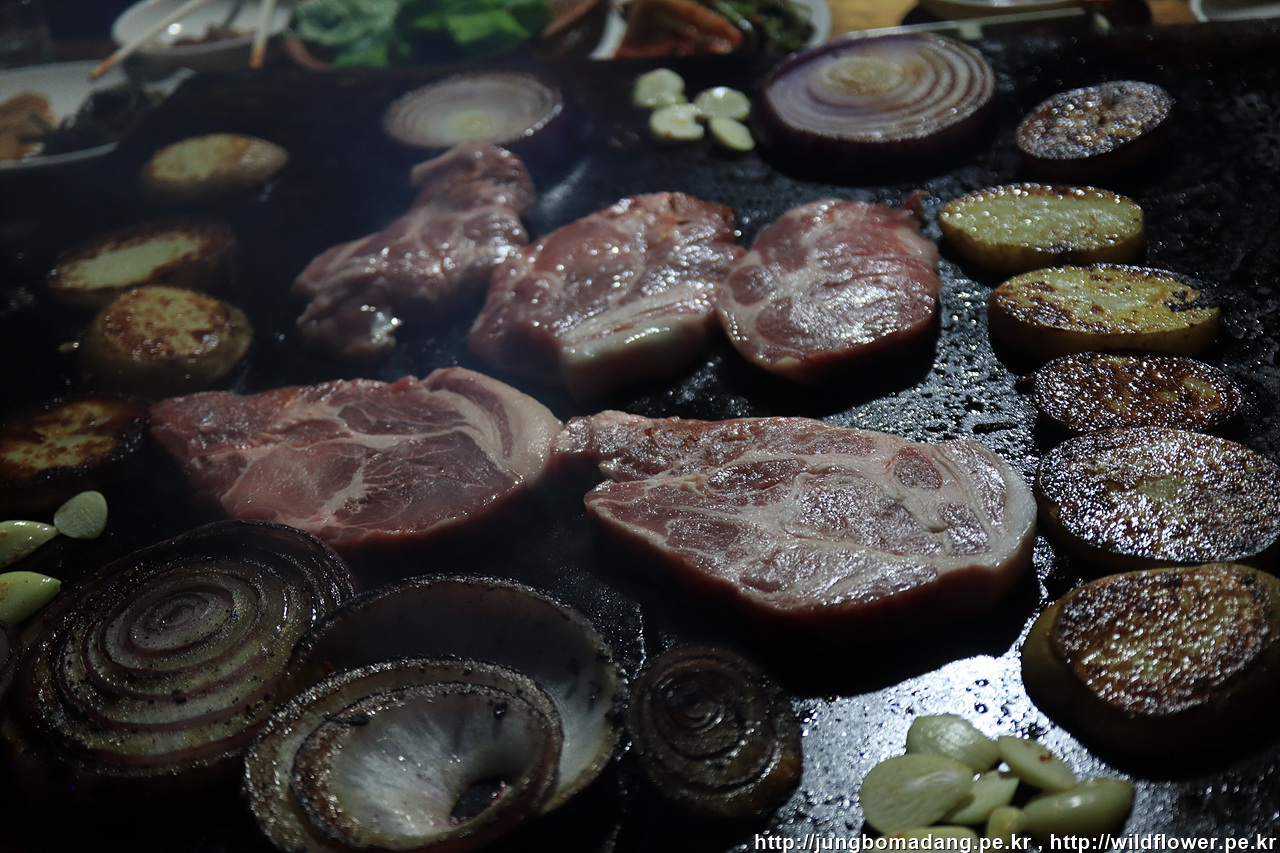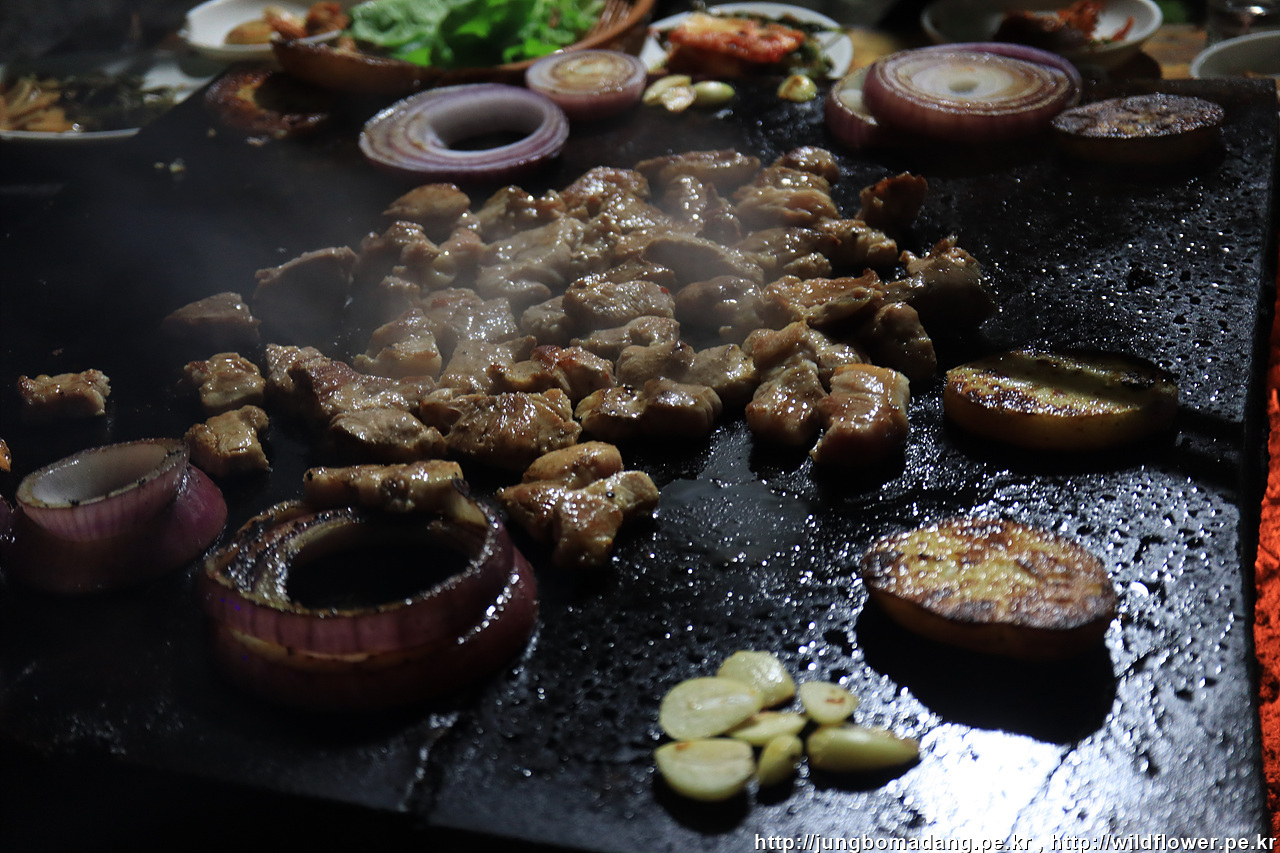 저녁은 하나로마트에서 구매한 지리산 흑돼지와 오겹살 구이