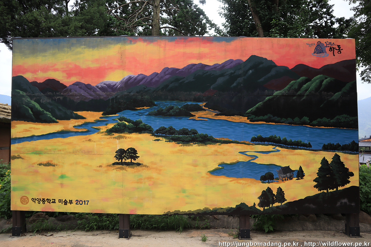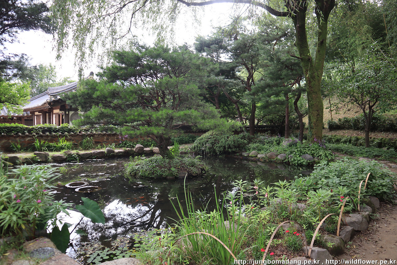 배롱나무의 붉은 꽃이 잘 어우러 집니다.