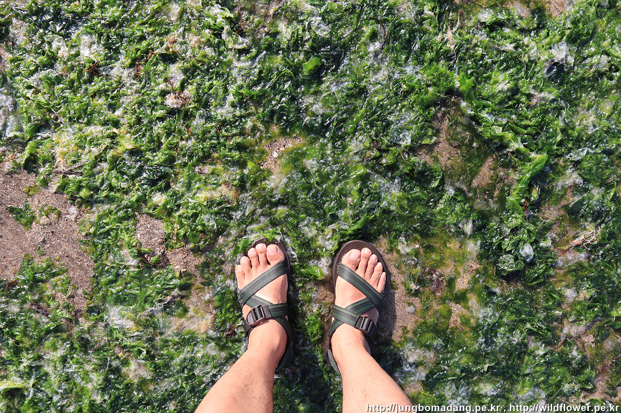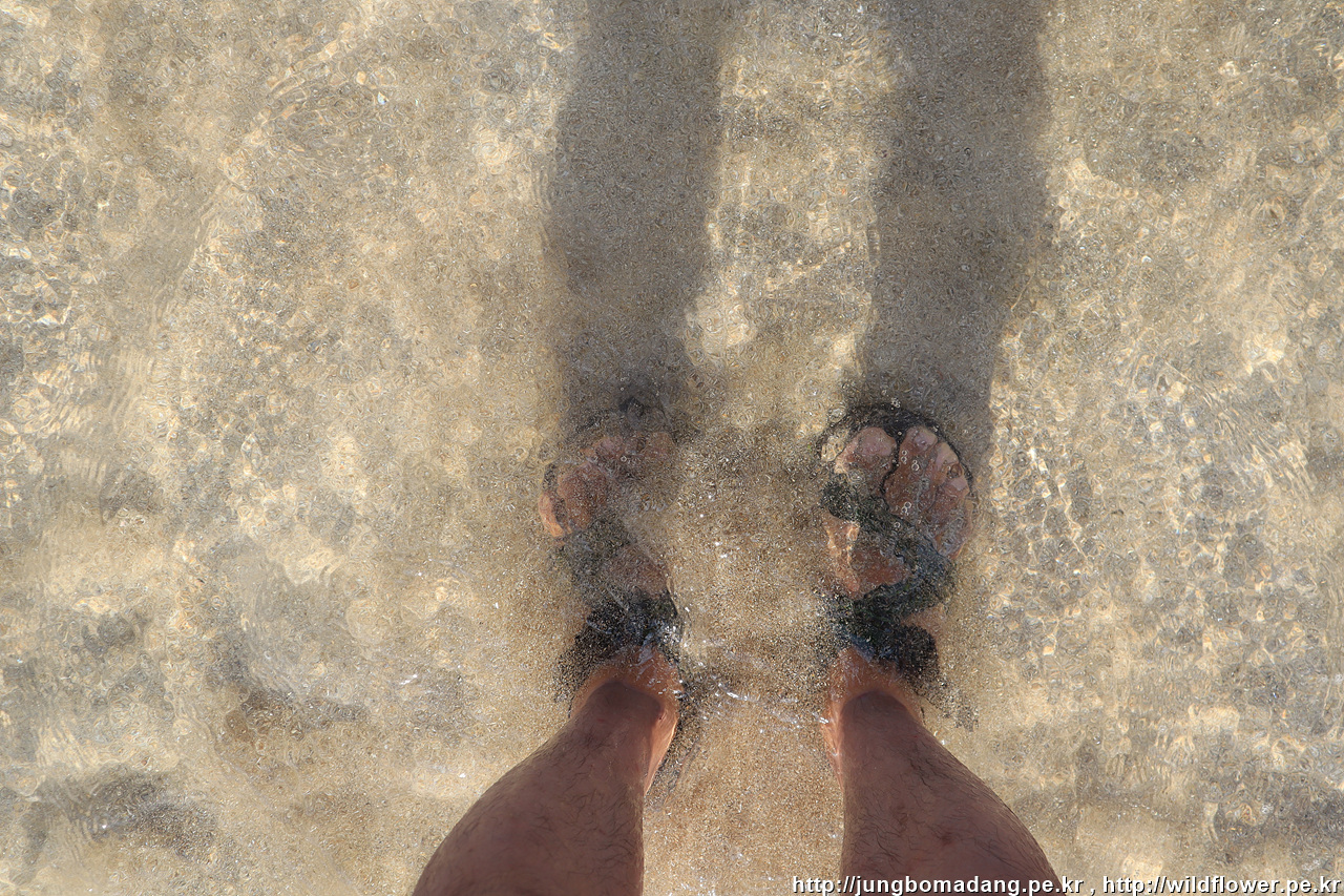 그냥 마무리하긴 아쉬우니 하도해변에서 바닷물에 담그어 봅니다. 역시 샌들 짱!!