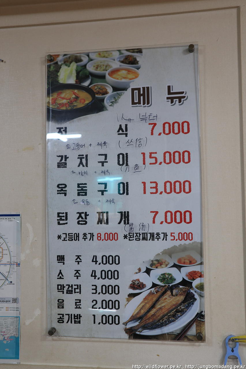 201번을 타고 서귀포터미널로 가는 길, 안덕을 지나는 데 유리창에 빼곡이 적힌 메뉴가 먼가 심상치 않은 식당을 창문밖으로 봅니다.