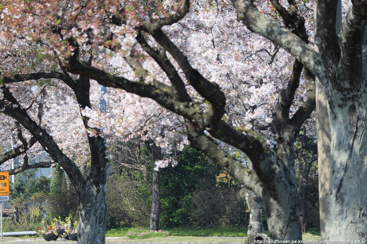 제주 첫날 보았던 한라체육관 종합경기장 일대 벚꽃입니다.