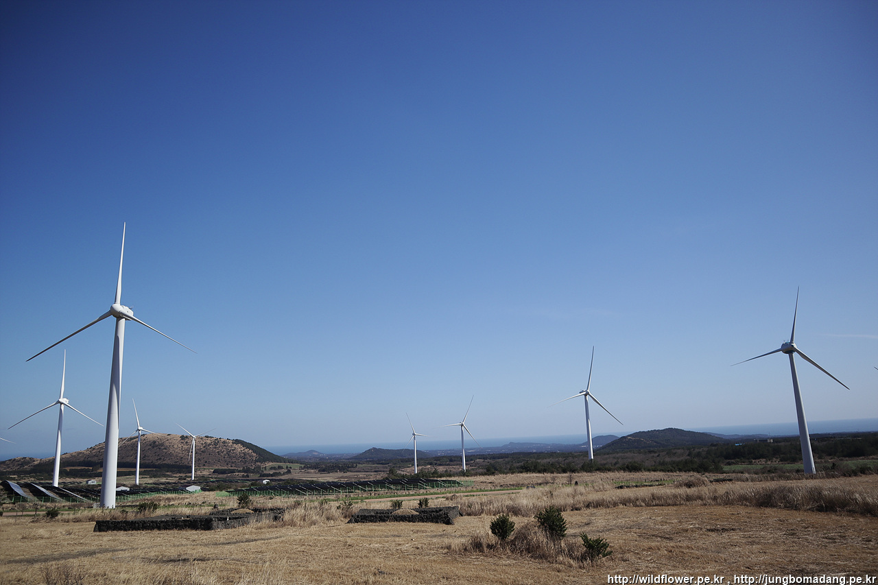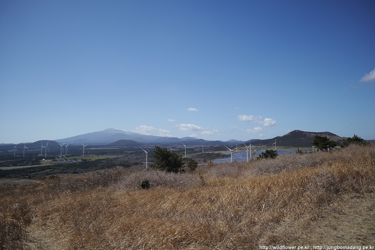 풍력발전기 뒤로 한라산
