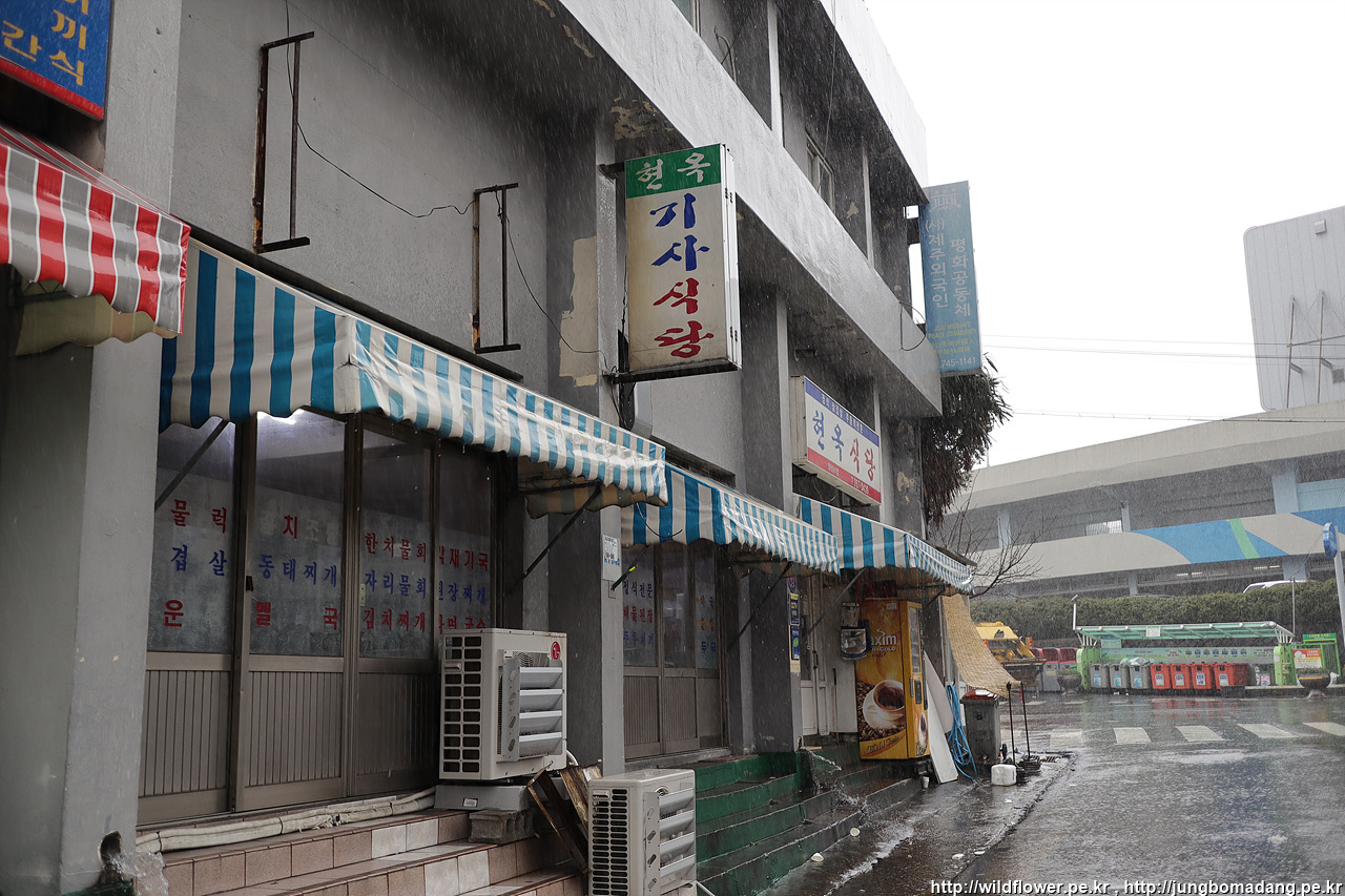 466번 버스를 이용해서 제주시외버스터미널에 도착. 식사를 하고 가기 위해 예전에 가본 기억이 있는 현혹 아니지 현옥기사식당에 도착합니다. 걸어오는 데 비가 엄청 쏟아지네요 ㅠ