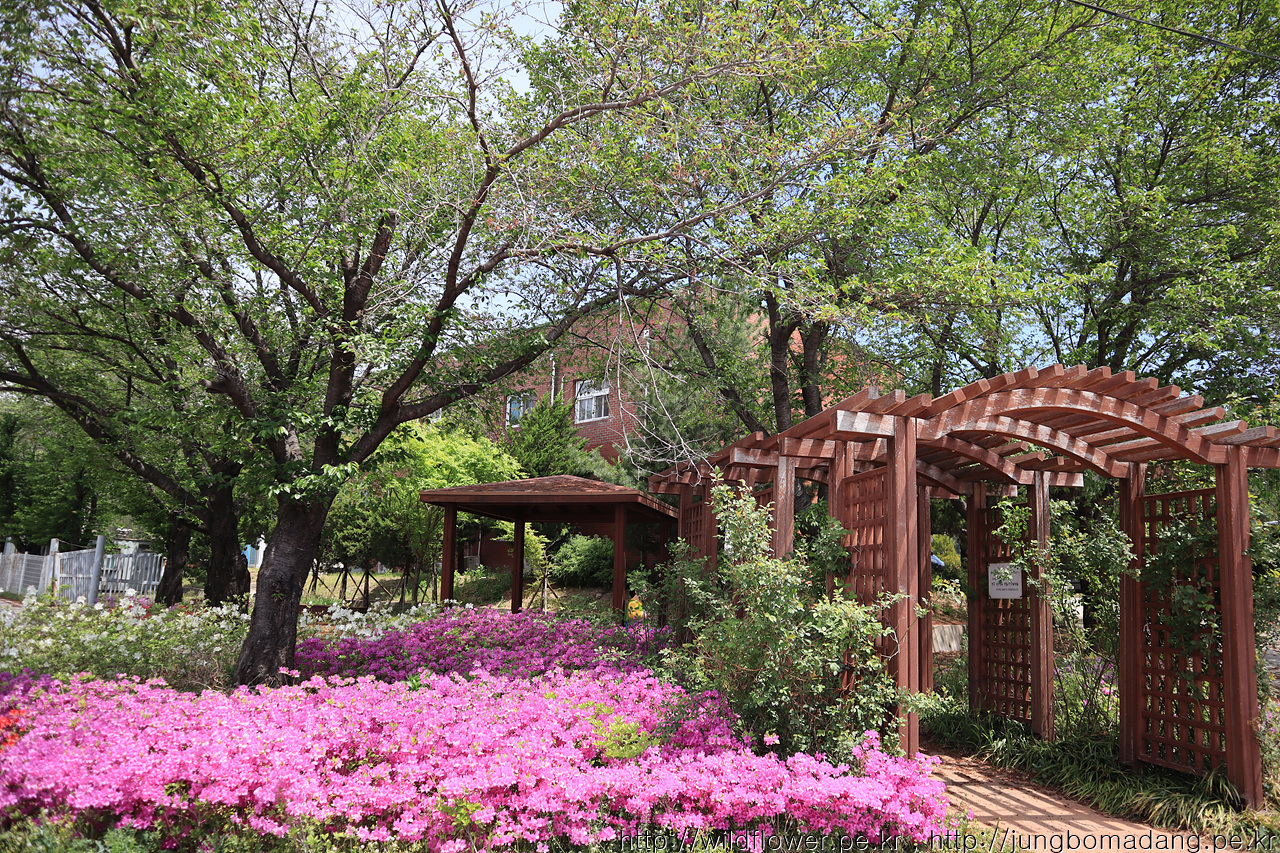 산철쭉이 도배된 정자 쉼터