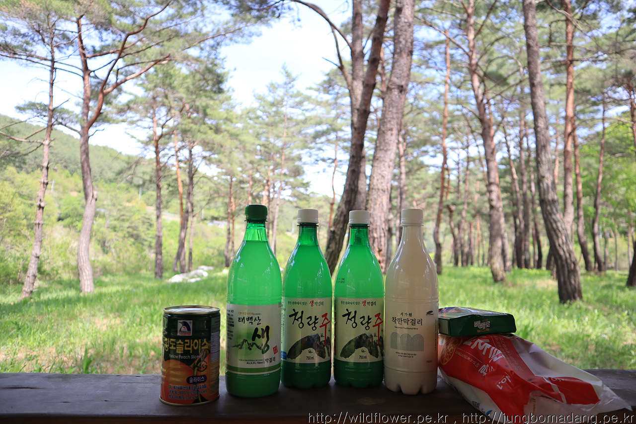 이런 곳을 그냥 지날 수 없으니 정자에서 춘양의 마트에서 털어온 먹거리를 꺼내고 막걸리에 황도 한캔 합니다.