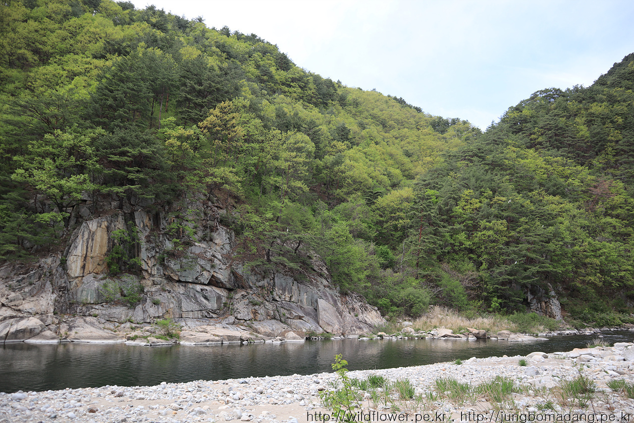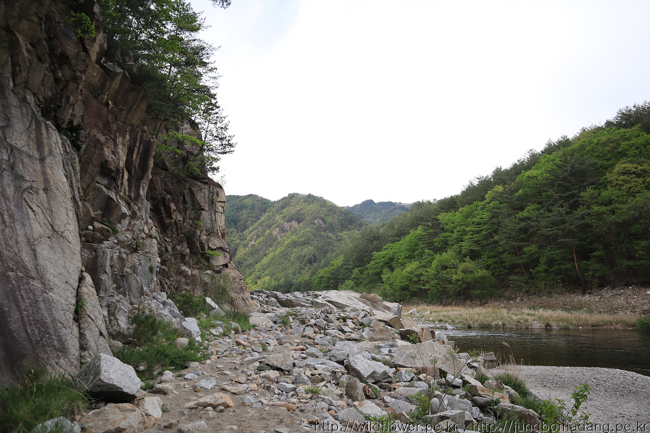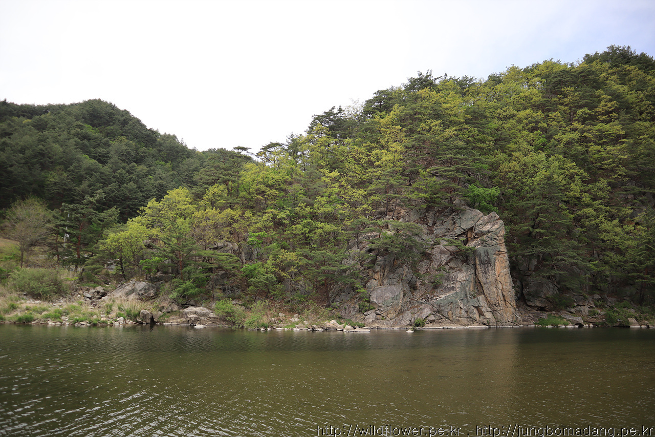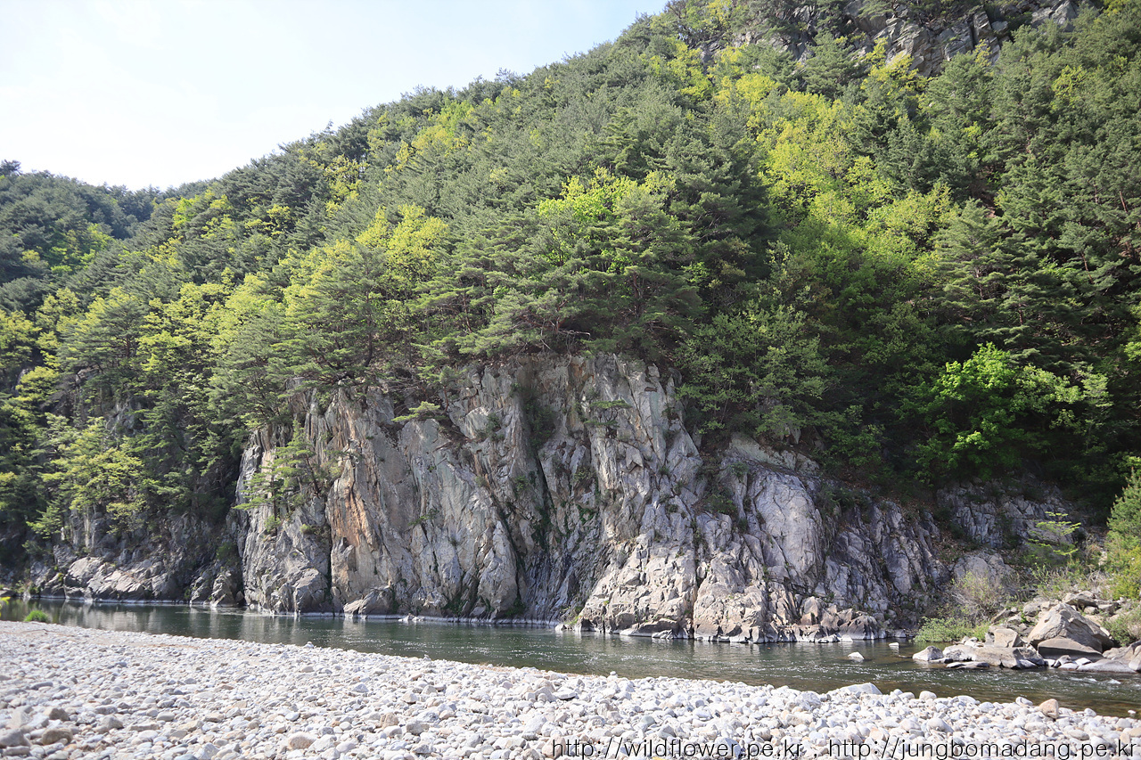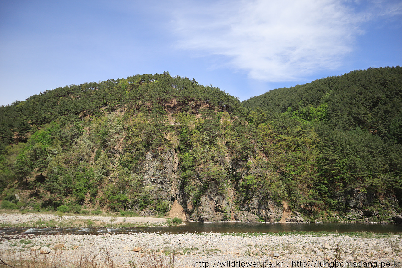 강 건너 벼랑에 소나무가 위태롭지만, 조화로움이 멋집니다.