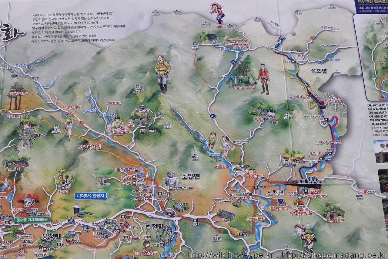 우선 세평 하늘길의 트래킹 시작점인 분천역까지 이동해야하는 데, 열차를 이용하는 방법(하루 2회 운행하는 청량리 ~ 영주, 영주 환승 ~ 분천)과, 버스를 이용하는 방법(하루 6회 운행하는 동서울 ~ 춘양, 하루 2회 운행하는 춘양 ~ 분천 ~ 남회룡)이 있는 데, 춘양을 경유하는 두번째 방법을 이용하기로 합니다. 이렇게 하면 춘양에서 식사도 할 수 있고, 하나로마트에서 삭량 확보도 미리 가능합니다.