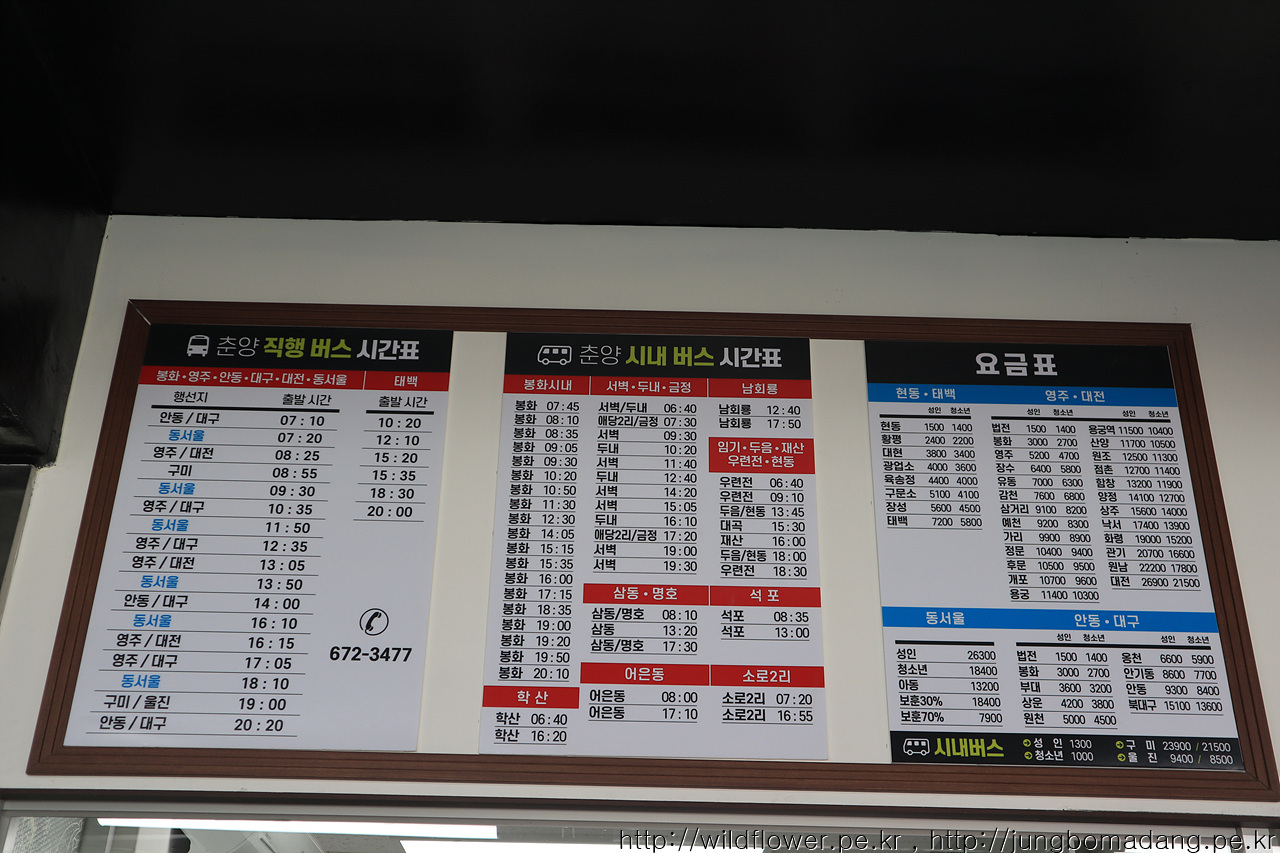 10시 40분에 춘양에 도착했습니다. 중간에 제천 부산방면 임시휴게소에서 잠시 정차도 했습니다. 남회룡 가는 버스가 12시 40분이네요. 매표소에 문의하니 시내버스도 표를 끊어야 한다고 합니다. 1300원입니다. 미리 끊지 않고 2시간동안 식사도 하고, 주변도 잠시 둘러볼 생각입니다.