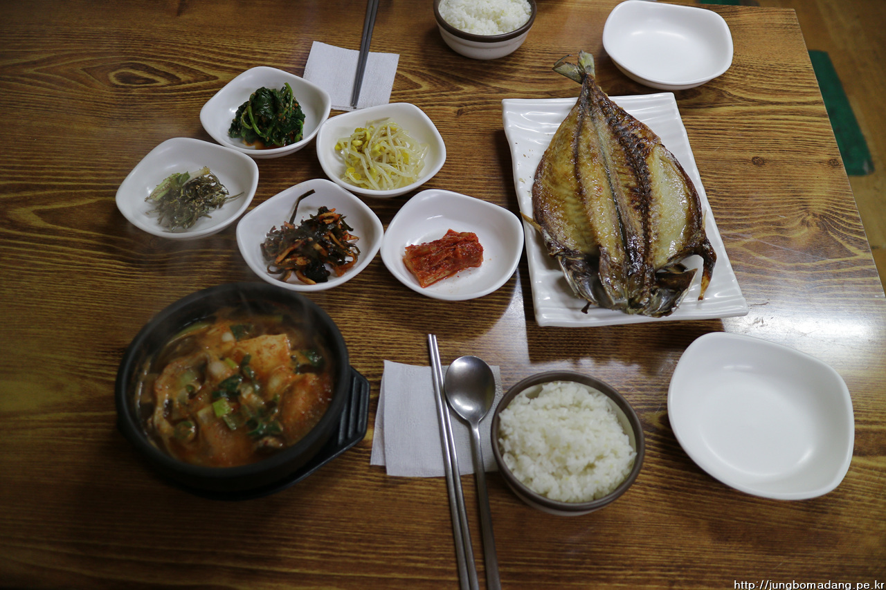 그리곤 점심을 원래 회를 드시게끔 하려 했는 데, 첫날 백반에 고등어 구이를 맛나게 드셔서 고등어 구이를 찾으셔서 여기 들어 옵니다. 고등어구이(15000원), 동태찌게(8000원), 공기밥 추가(1000원)를 합니다.