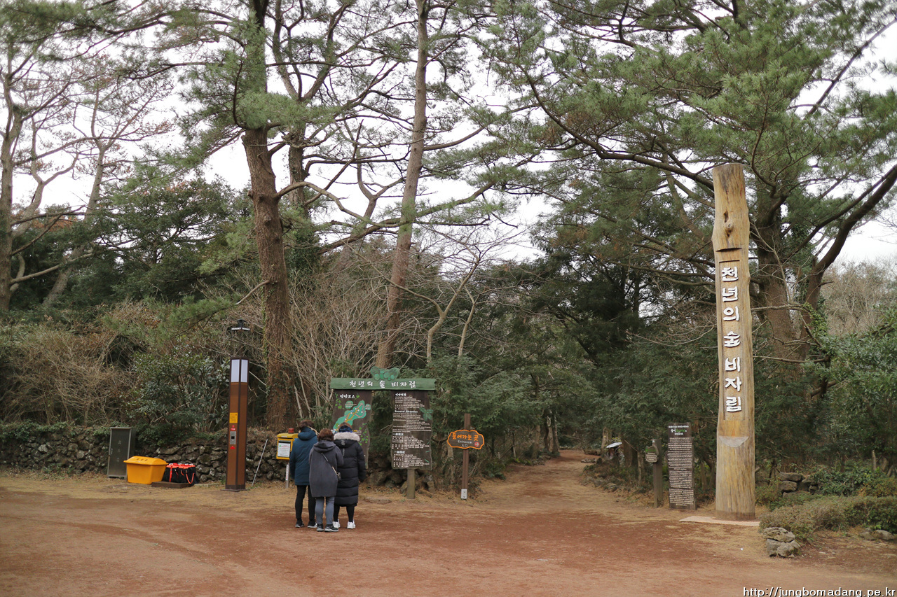두번째로 간 곳은 원래 계획에 있던 비자림 - 어머니가 춥지 않겠냐 걱정 하시는 데, 따뜻한 외투로 갈아입게 해드리고, 양 주머니에 군용핫팩 한개씩 넣어 드리고, 출발!