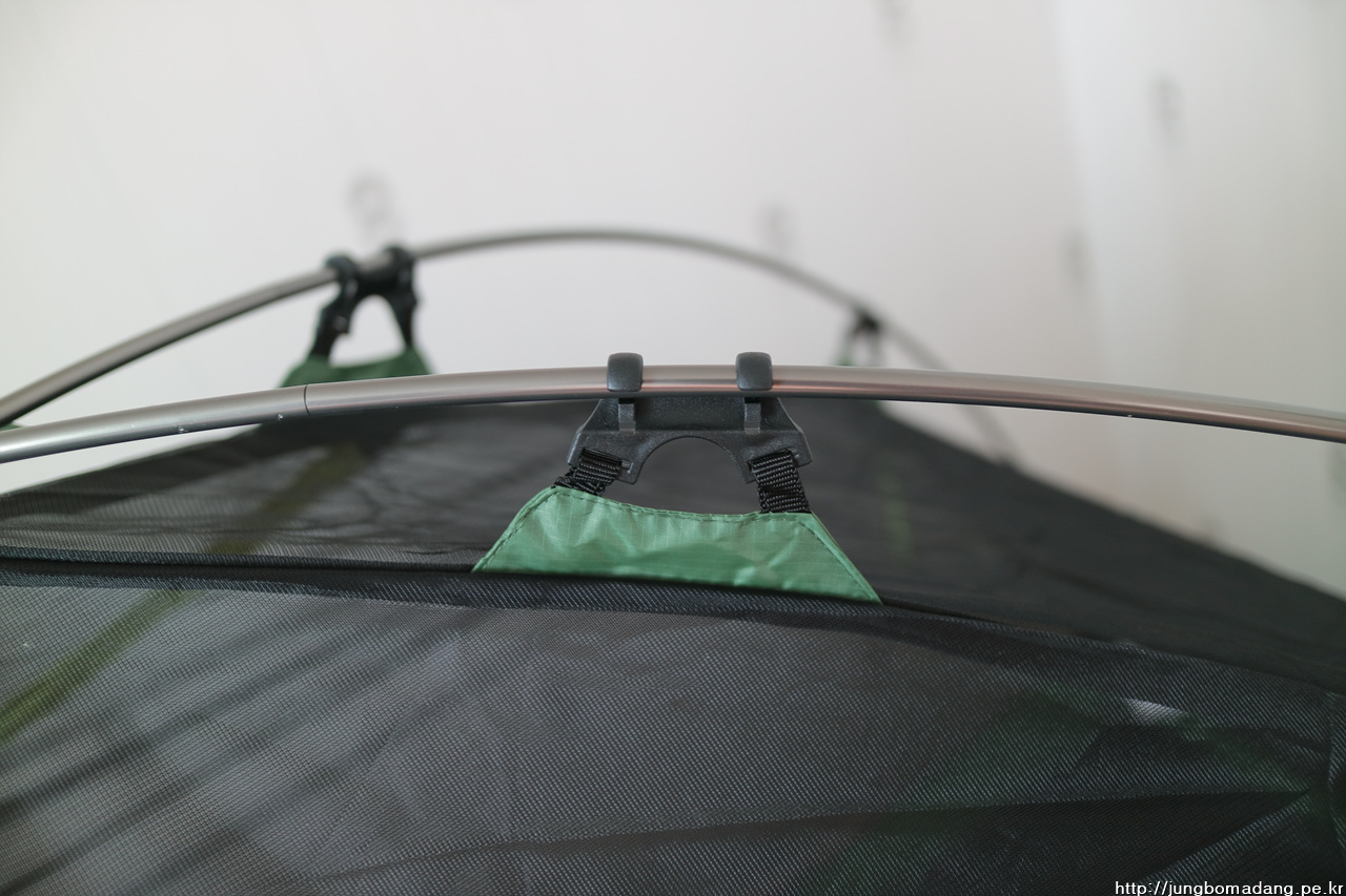 설치된 이너의 모습입니다. X자 형태의 폴대로 고리로 폴대에 거는 구조로 설치하는 데 얼마 안걸립니다.