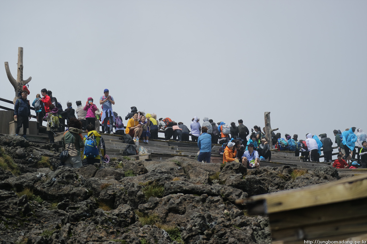 12:39 평일임에도 불구하고 백록담 정상은 요래 바글바글 합니다. 외국인도 무지 많구요. 진달래밭 대피소 옆에는 뭔가 건물이 새로 짓는 거 같기도 하고요.