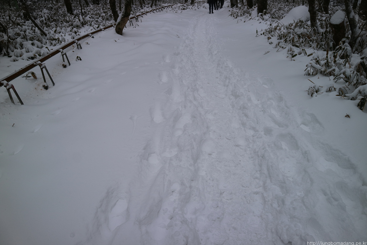 초입은 적설량이 발목정도네요.