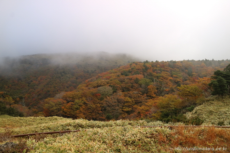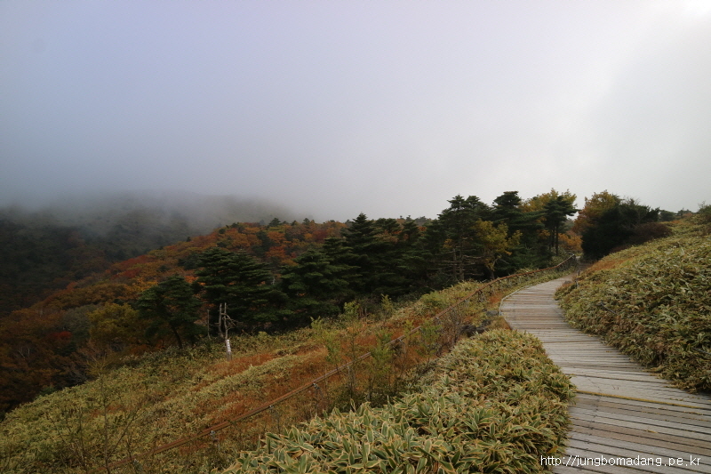 09:30 영실쪽으로 하산을 시작합니다. 남벽은 구름에 가리워져 안보이구요.
