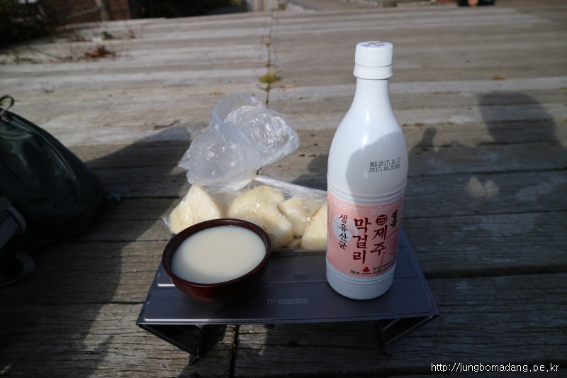 저는 뭐... 막걸리에 배 몇조각! 배송하산 분에게 배도 나눠 드리구요. 추버서 오래는 있지 않구요.