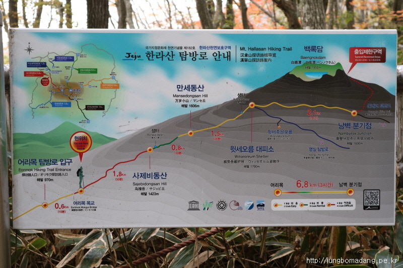 4시간 30분간의 어리목~영실 산행을 마치고, 2.5km를 걸어 내려갑니다. 그래야 240번 버스를 탈 수 있으니까요.