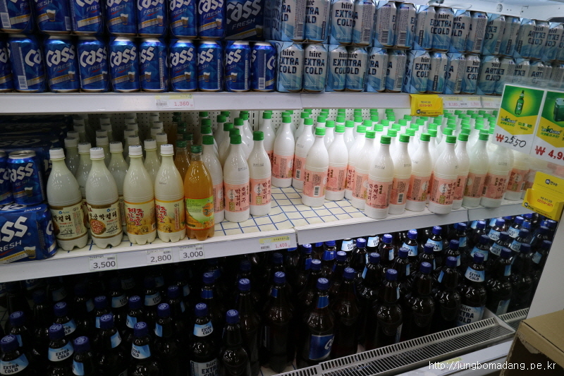홍마트에서 막걸리 2병과 캔코피 빅사이즈