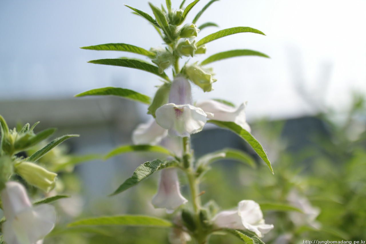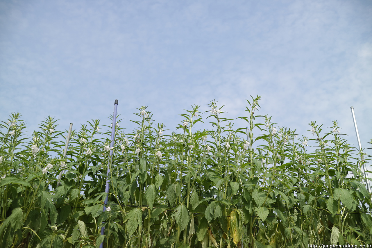 참깨밭 뒤로 파란 하늘이 잘 어울리네요