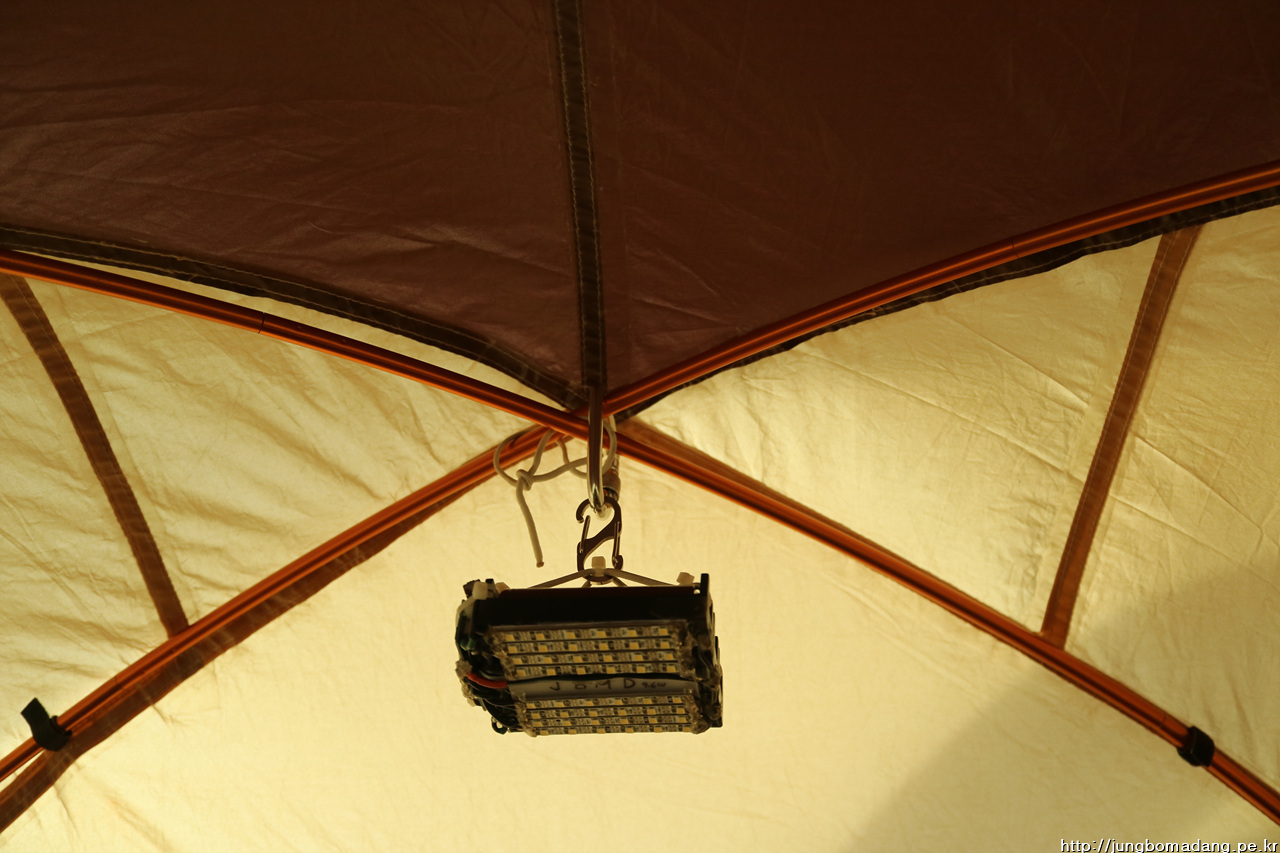 담날 늘어진 고무줄 대신 카라비너로 대체해서 다시 랜턴 고정. 근데 강풍으로 달그락 달그락 약간의 소음이 있네요. 그나마도 바람소리에 뭍혀서 잘 안들리는 소음 ㅋㅋㅋ