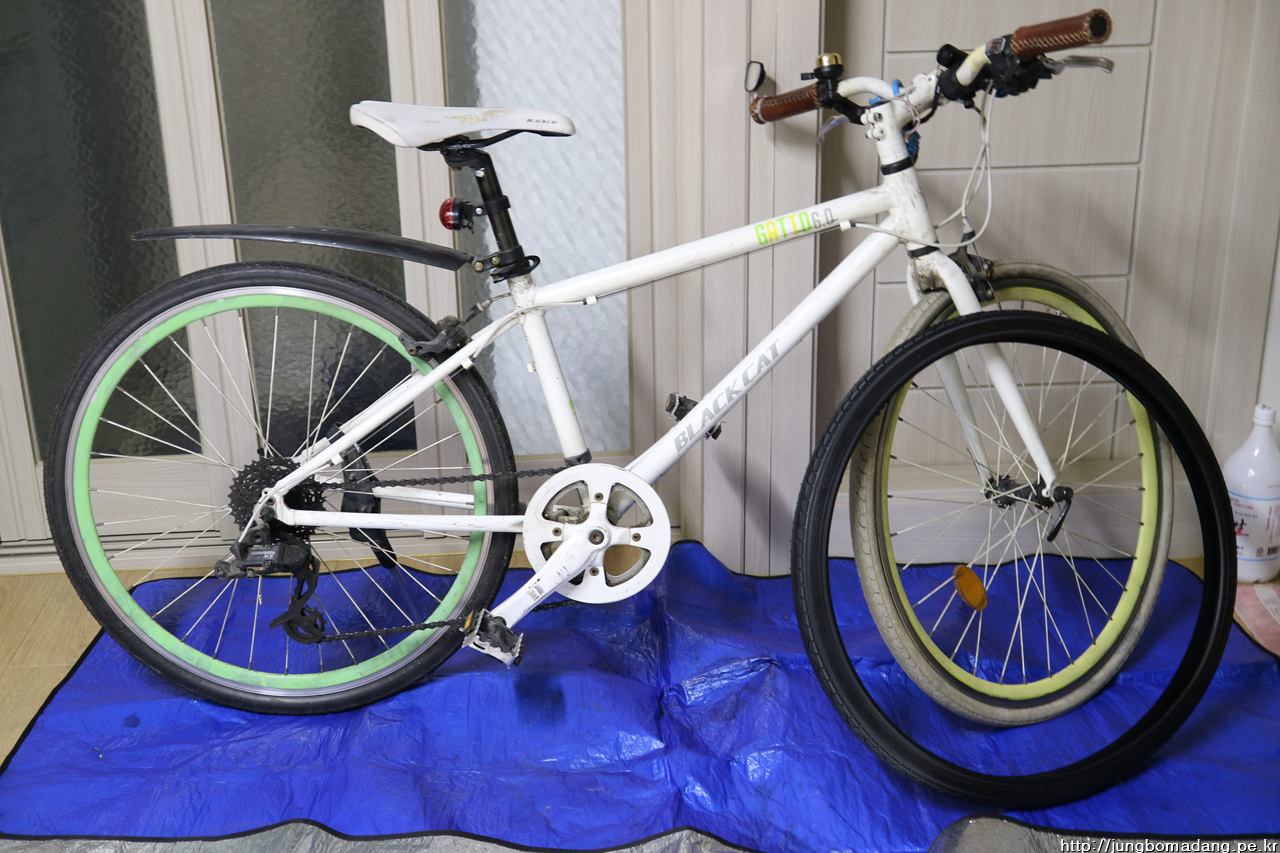 자전거 앞 타이어 교체 하고 튜브 펑크 때우기 대기중 ㅠㅠ
