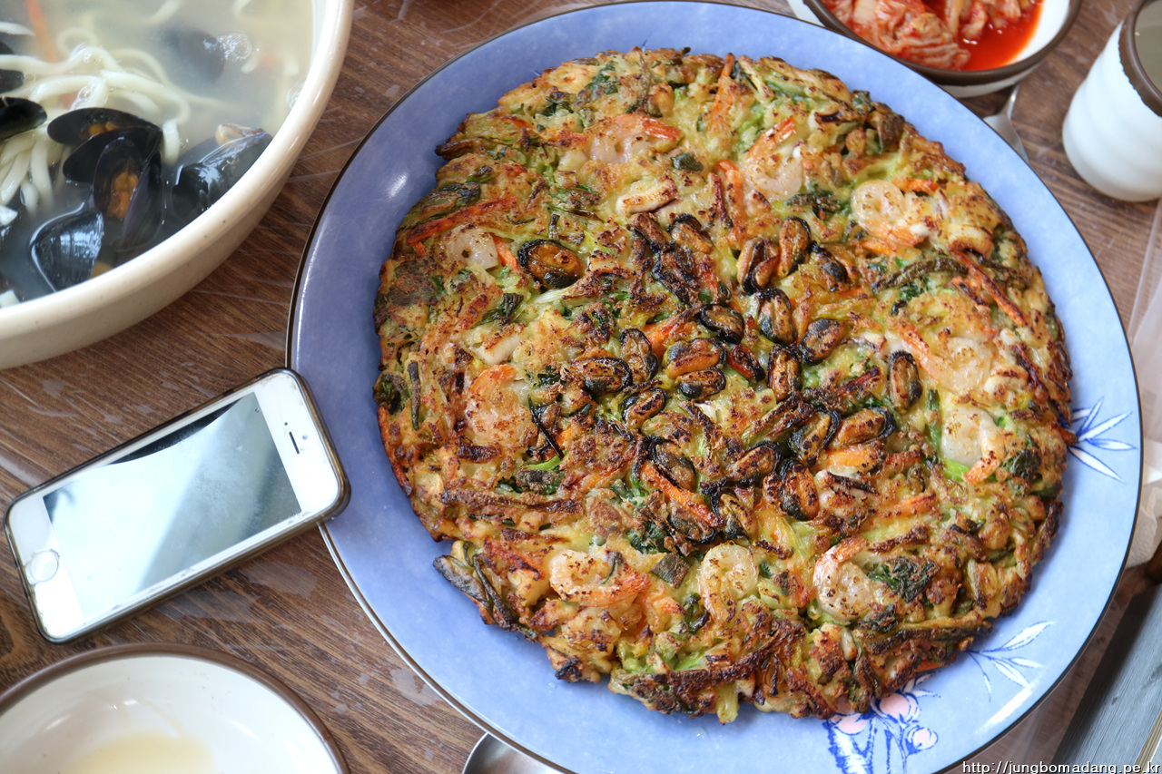 해물파전 나왔어요. 근데 사이즈가?