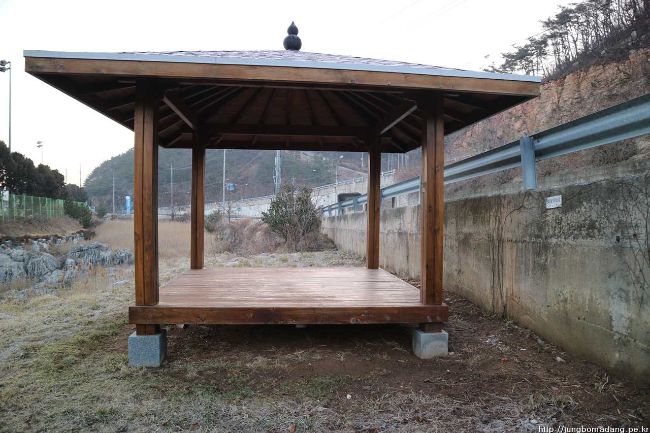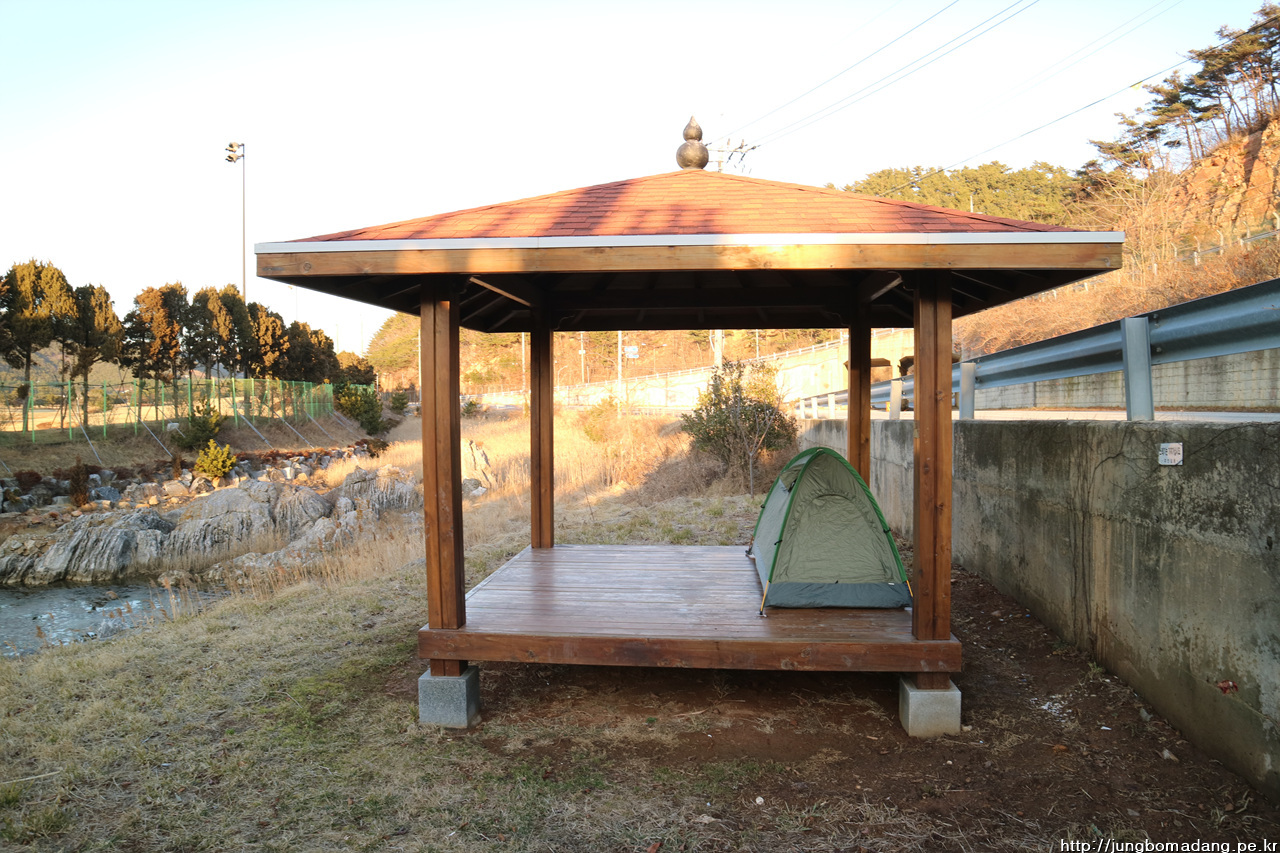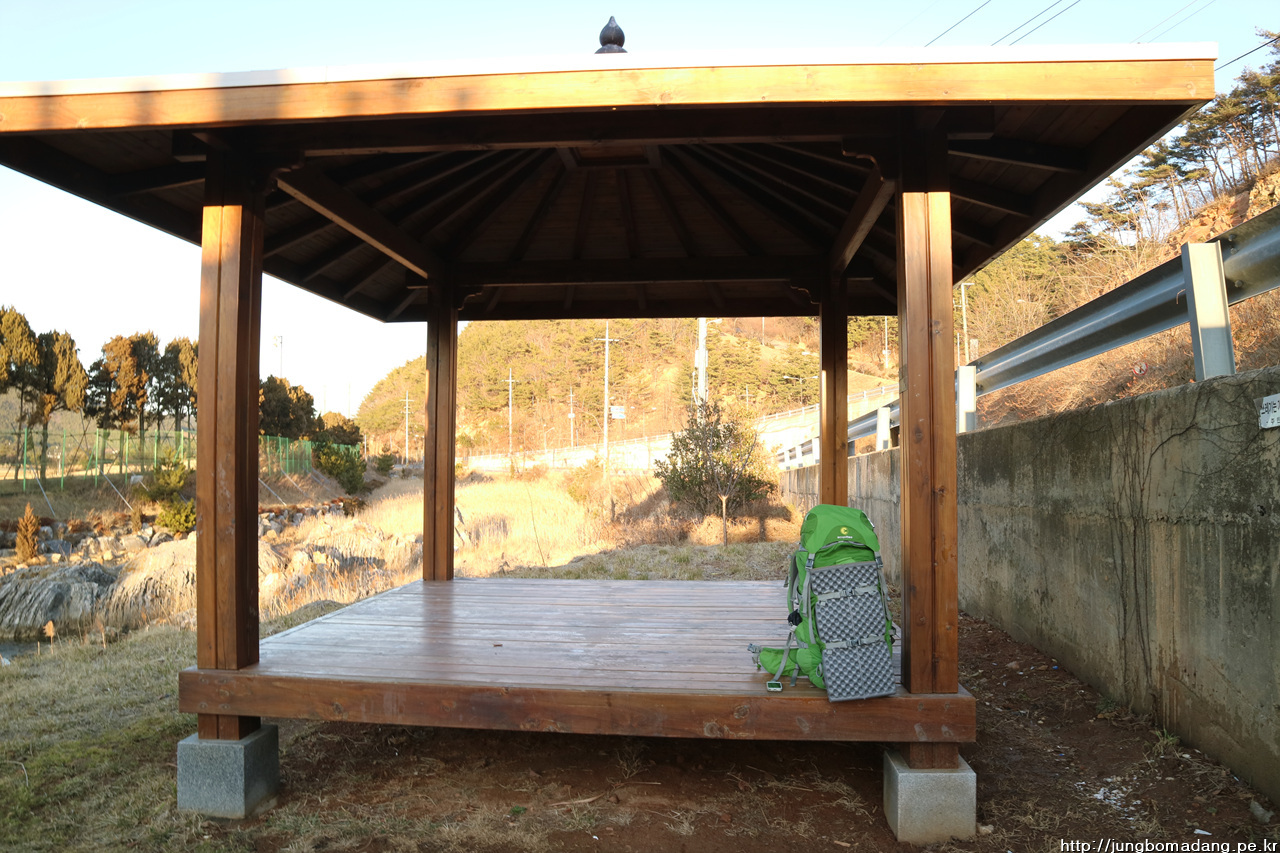 어쩔수없이 별로 내키진 않지만, 차선책으로 인근 정자에 짐을 내립니다.