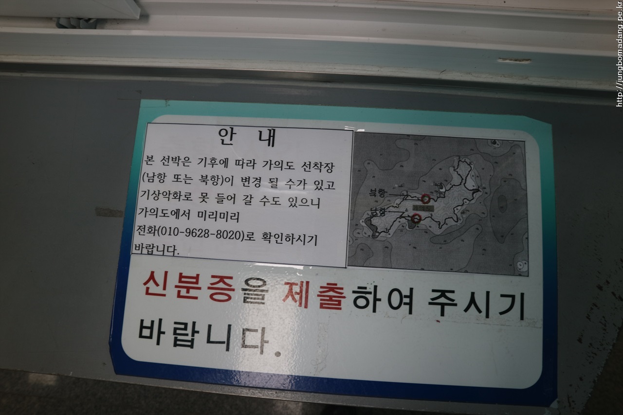 그리고 아래 사진을 찍으라고 하면서 가의도 남항, 북항중에 선착장 위치가 변경될 수 있으니 나오기 한시간 전에 확인하라고 합니다.