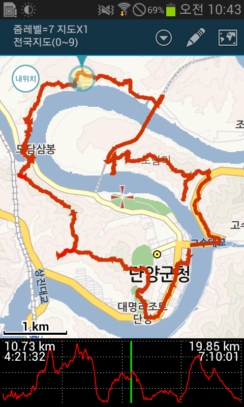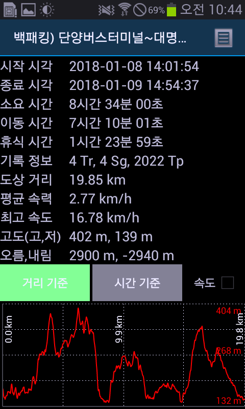 이틀간 걸은 거리입니다. 19.85km