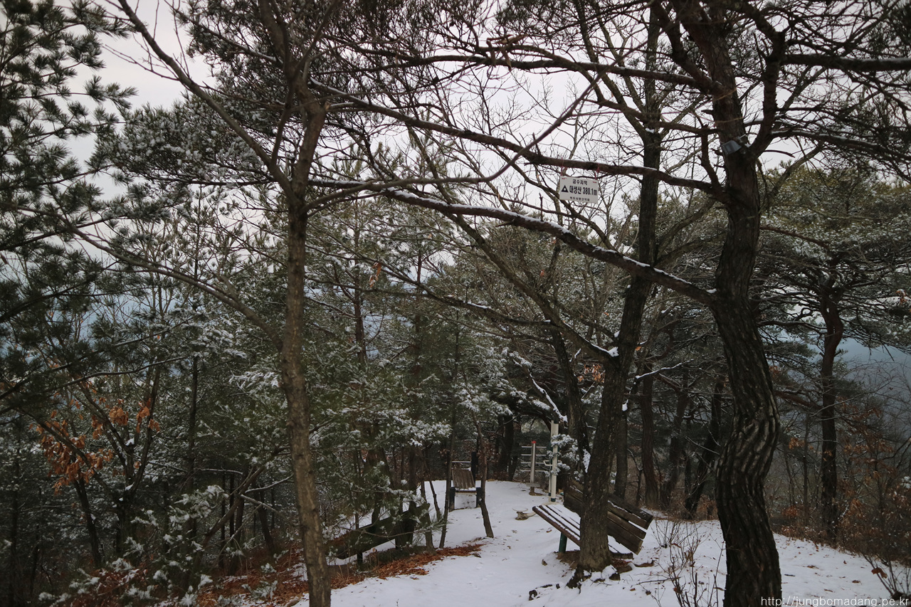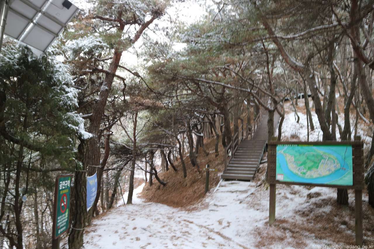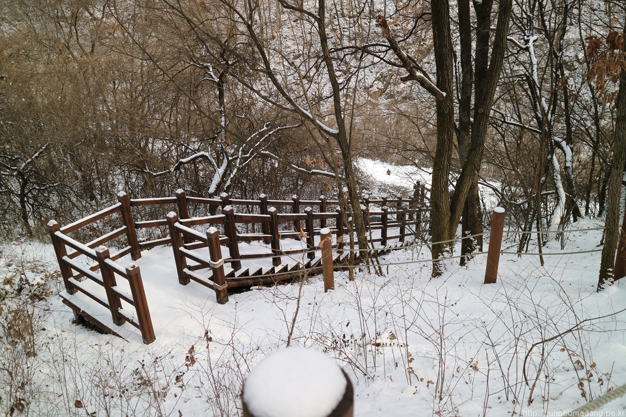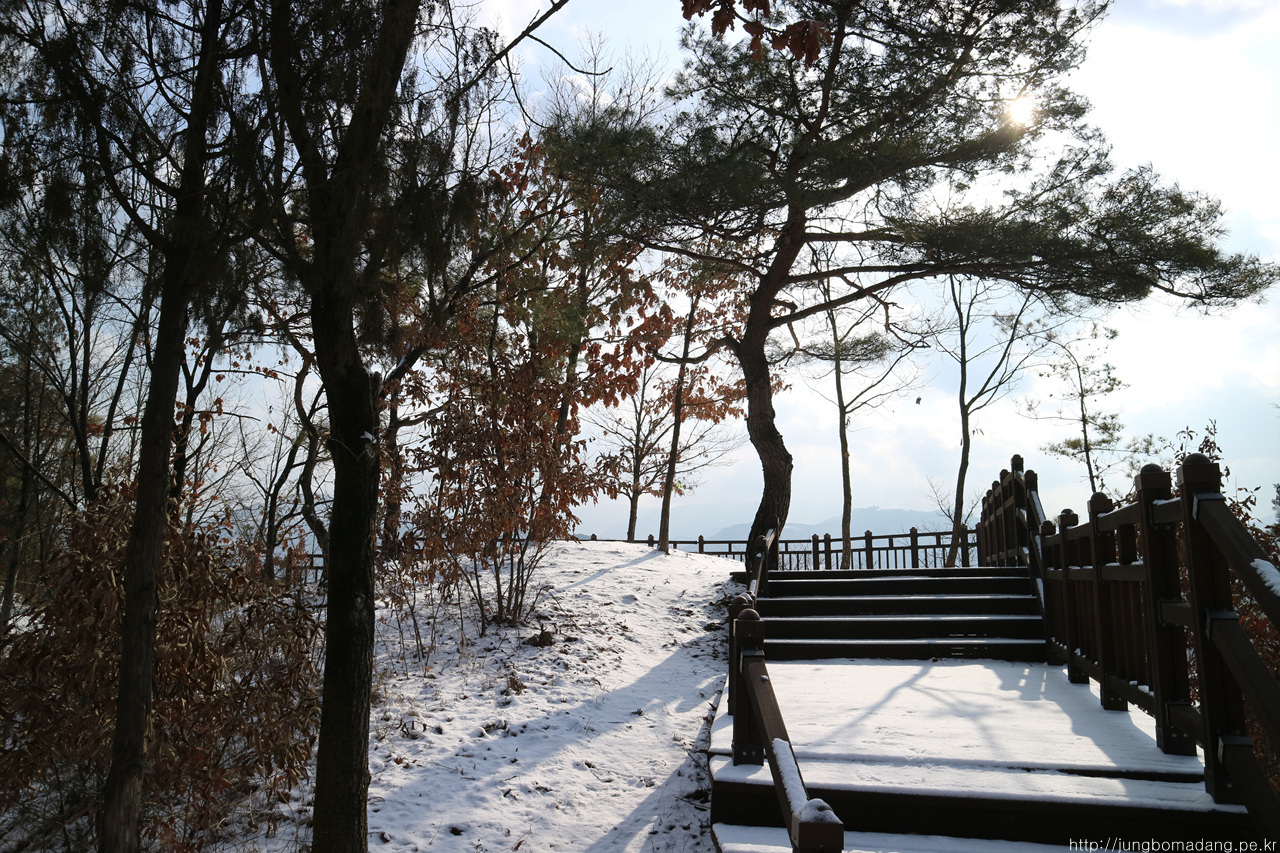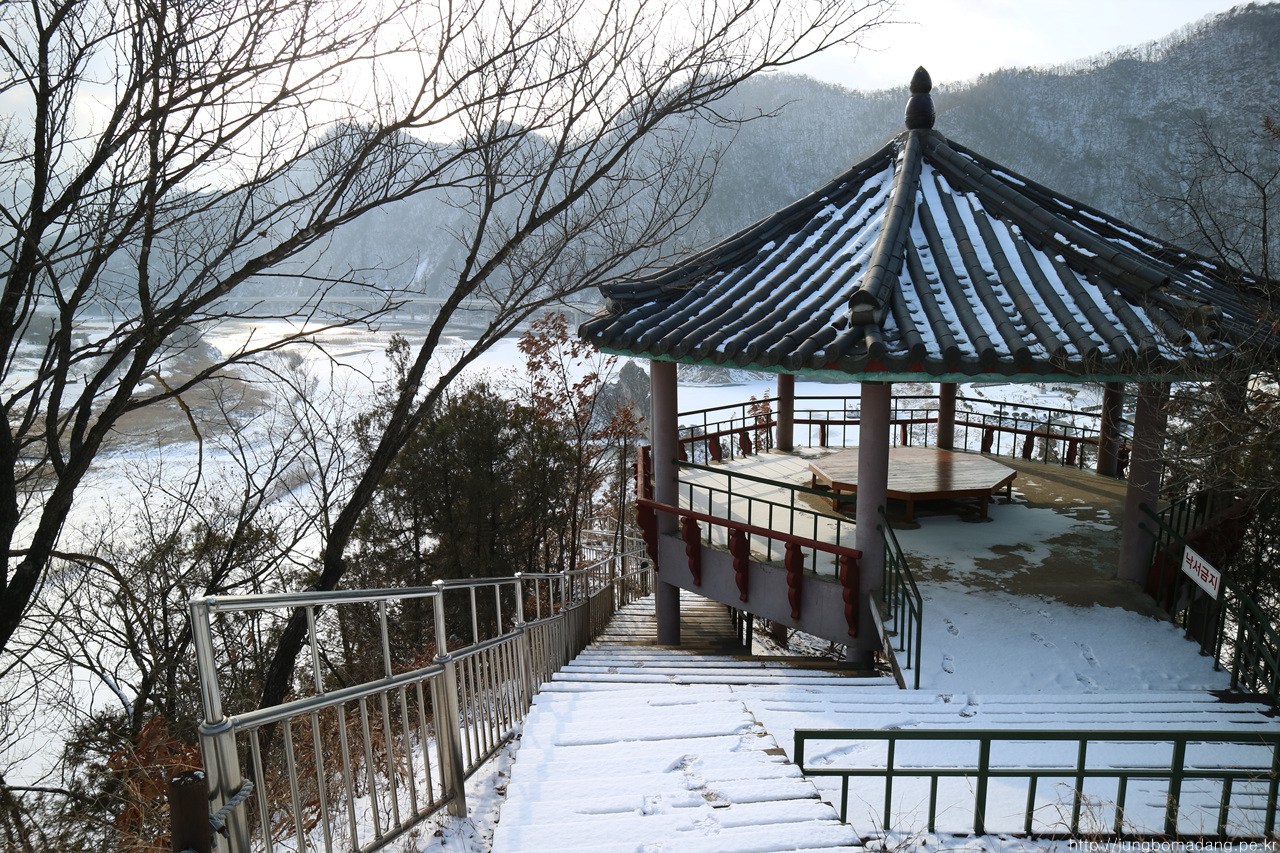 알고보니 새벽에 눈이 와서 정자 안에까지 온통 눈밭!