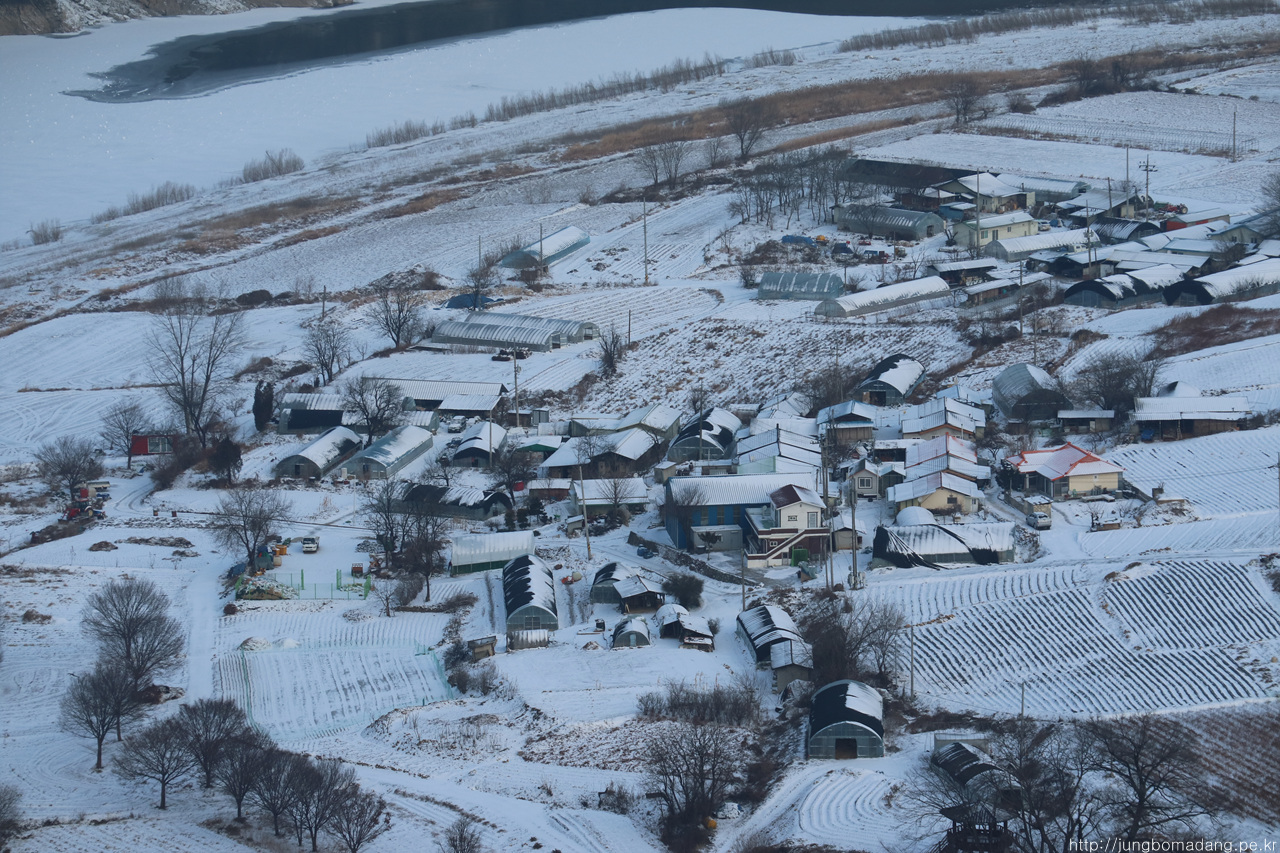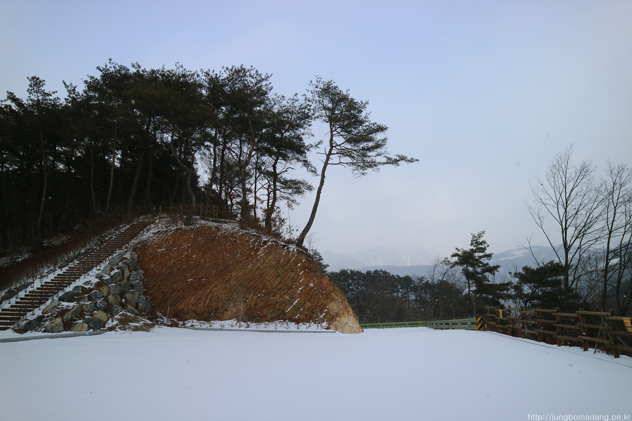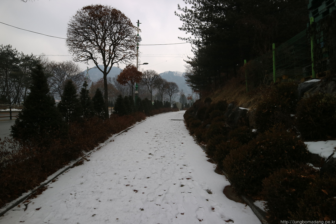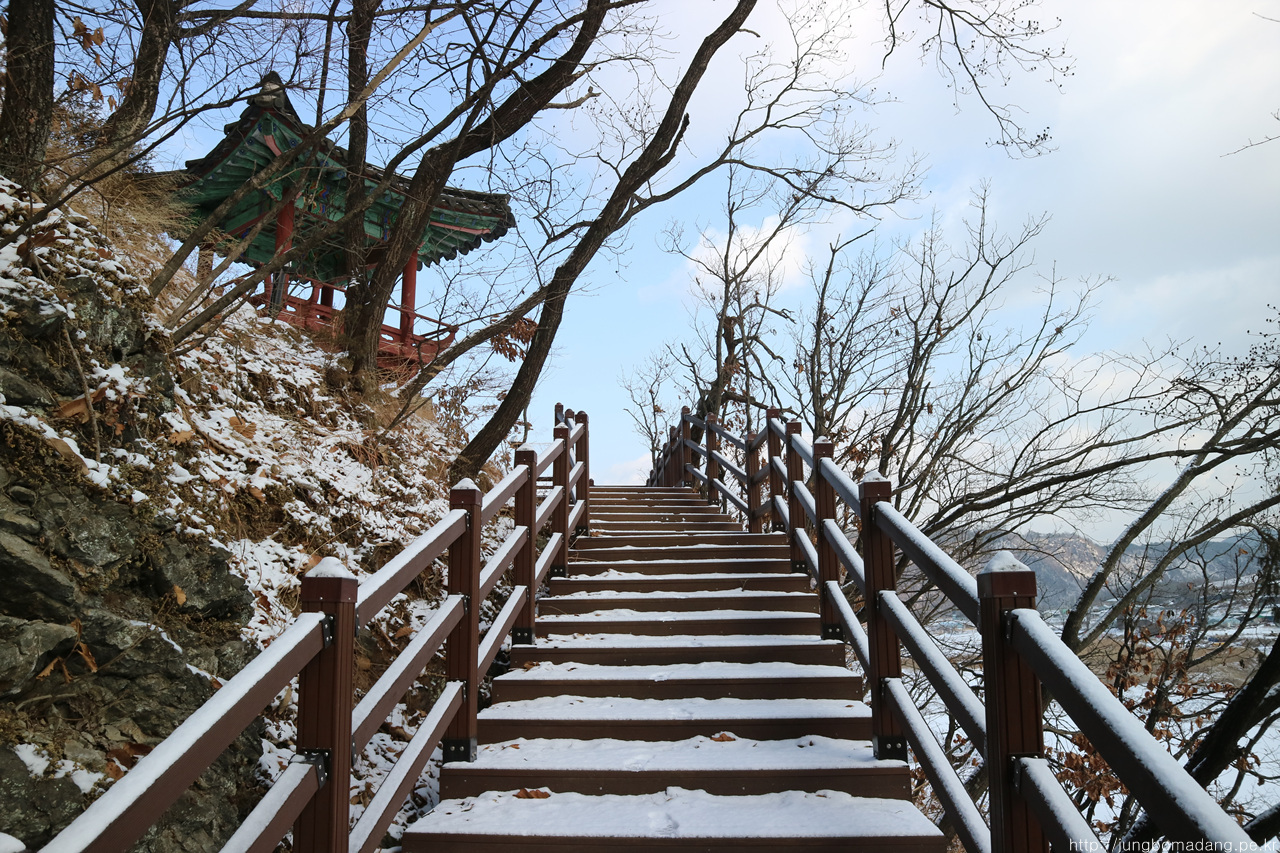 알고보니 새벽에 눈이 와서 정자 안에까지 온통 눈밭!