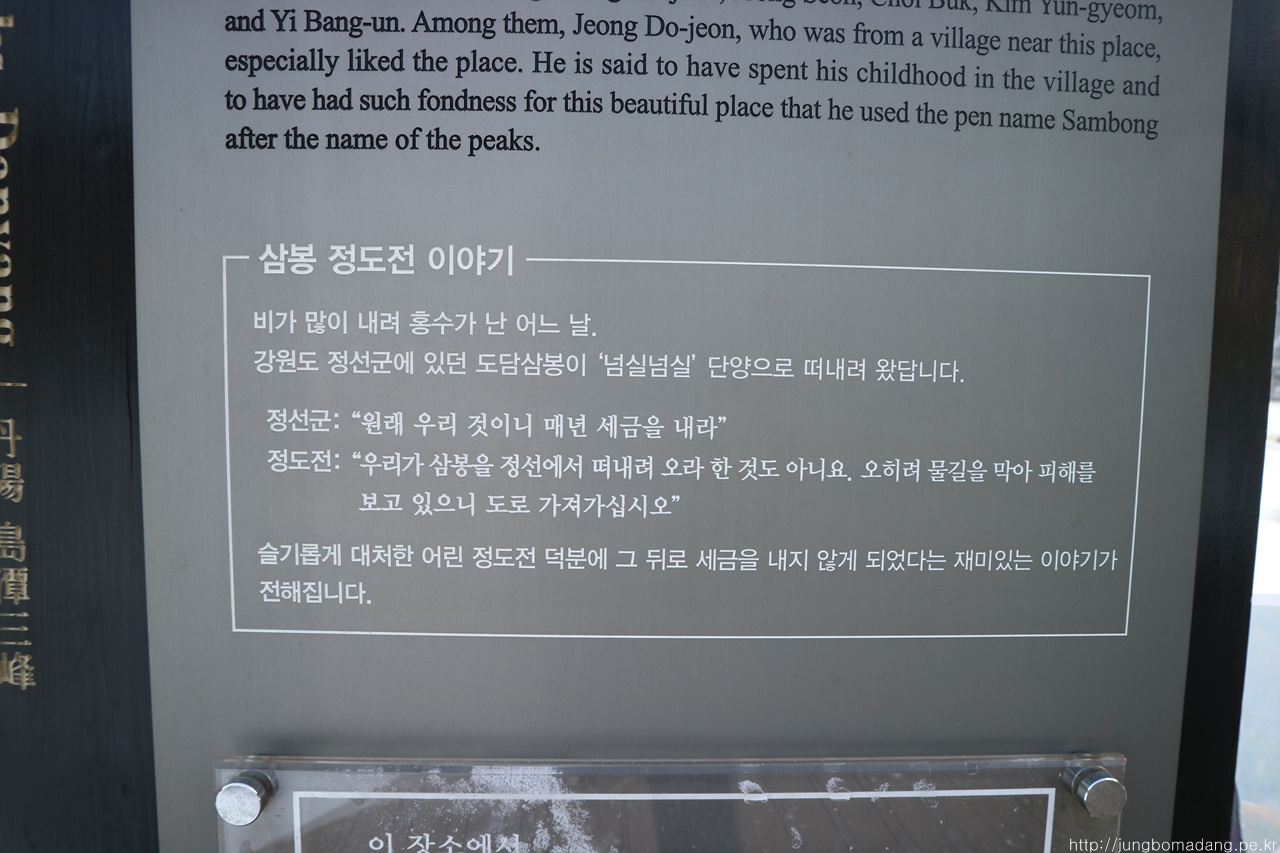 이곳은 조선의 개국공신 정도전이 유년시절을 보냈던 곳이라고 하네요.