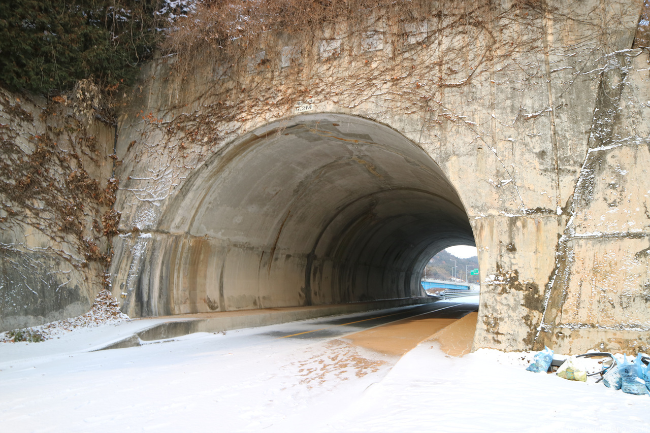 터널을 지나고 - 터널 안쪽에 배추를 말렸는 지 양옆으로 방치되어 있네요.