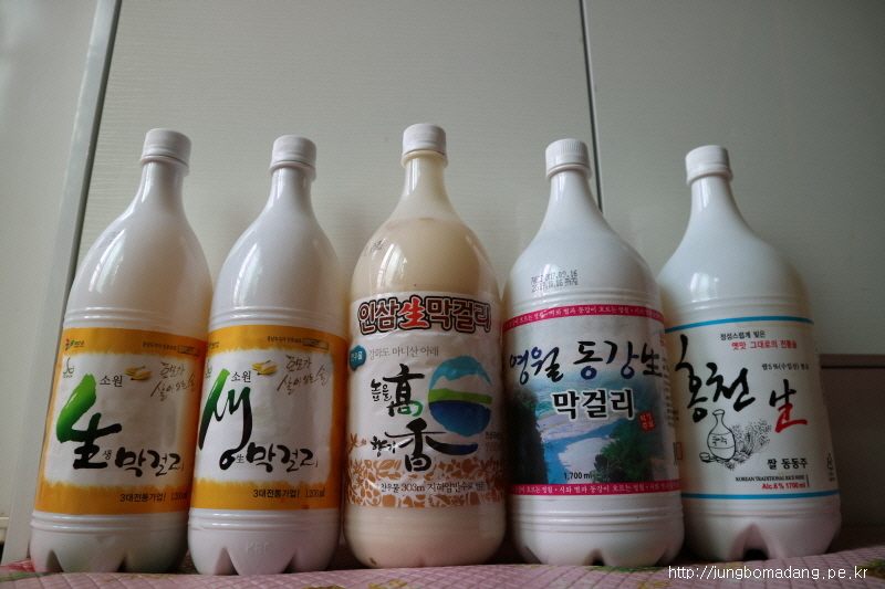 하핫! 어쩌다 보니 냉장고를 점령하고 있는 삼도(강원도[홍천,영월],충청도[태안],인천광역시[강화]) 막걸리들!