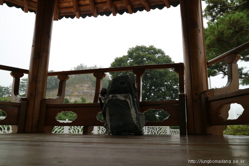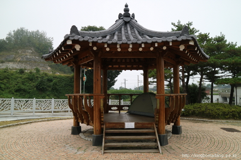 근처 정자에서 곧바로 텐트를 신속히 치고 취침 완료! 약 4시간 정도 잔 거 같네요...