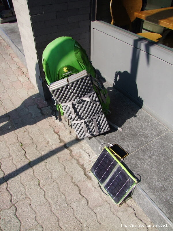 하지만, 전날 유일하게 챙겨온 18650 충전지가 절단나는 바람에 다행히 추가로 챙겨온 솔라패널로 스맛폰을 굶기지 않기 위해 처절한 사투가 시작 됩니다.