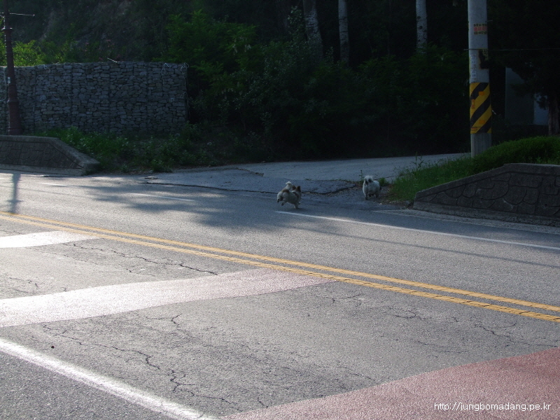 동네 견공들이 신나서 저희를 구경하러 오는 데, 오고 가는 차들 떄문에 다칠까봐 되돌아 가라고 합니다.
