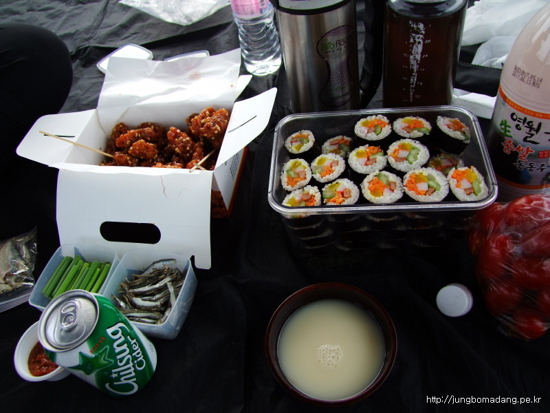닭강정과 막걸리 2병, 시원한 생수 2통 사다 주시고 바로 바람과 함께 사라지십니다. 낼 시간되면 코피 한잔하기로 하구요.