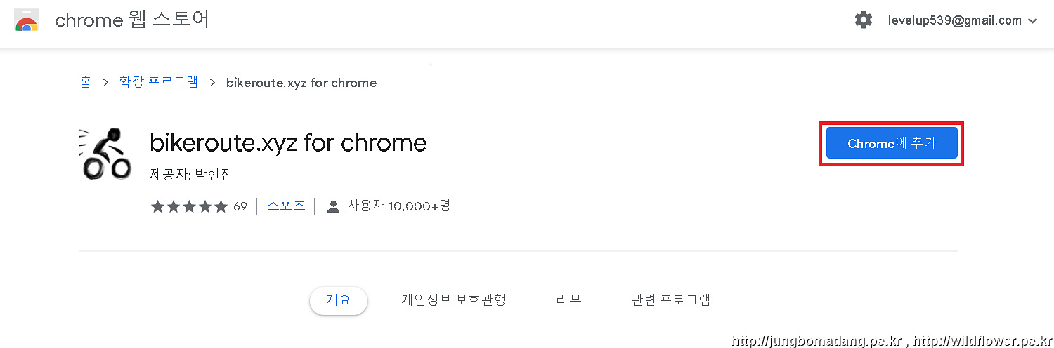1-3. 확장 프로그램 등록 : 크롬 웹 스토어 좌측 산단 [스토어 검색]에서 [bikeroute xyz] 입력 후 검색합니다.